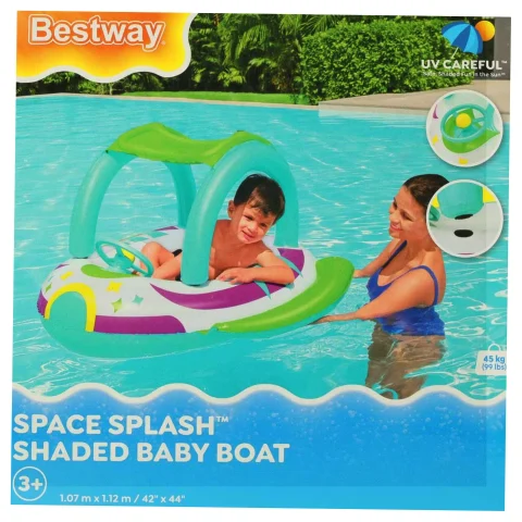 Unikalny kształt kosmicznego statku przyciągnie uwagę każdego dziecka i sprawi, że poczuje się jak prawdziwy odkrywca kosmosu. Ponton jest stabilny i bezpieczny, a dmuchane dno zapewnia komfortowe miejsce do odpoczynku i zabawy. Dodatkowym atutem jest daszek, który chroni delikatną skórę dziecka przed promieniami słonecznymi.