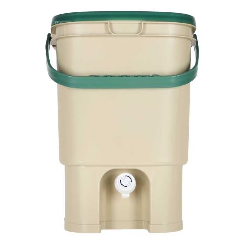 Kompostownik kuchenny 15L do zbierania bioodpadów i odpadów organicznych. Wyposażony w pokrywę, tackę ociekową oraz kran do odprowadzania płynu. W zestawie pojemnik na płyn i akcesoria do obsługi. Idealny do segregacji.