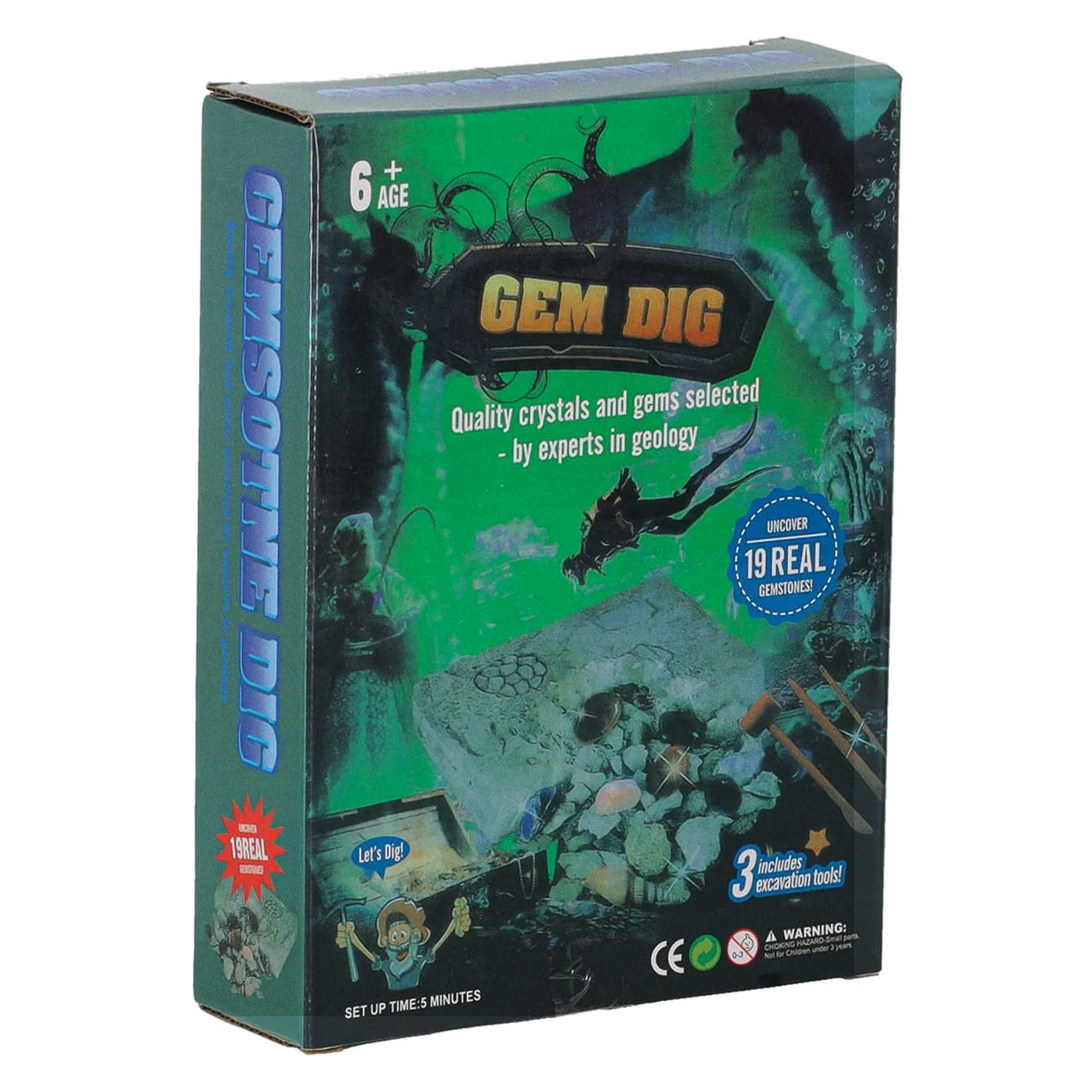 Zestaw wykopalisk kamieni kryształów to ekscytująca symulacja prawdziwych wykopalisk. Mały odkrywca poznaje świat geologii i archeologii w praktyczny sposób, odkrywając kamienie i kryształy niczym prawdziwy archeolog. Kopalnia diamentów rozwija ciekawość, wyobraźnię i radość z odkrywania.