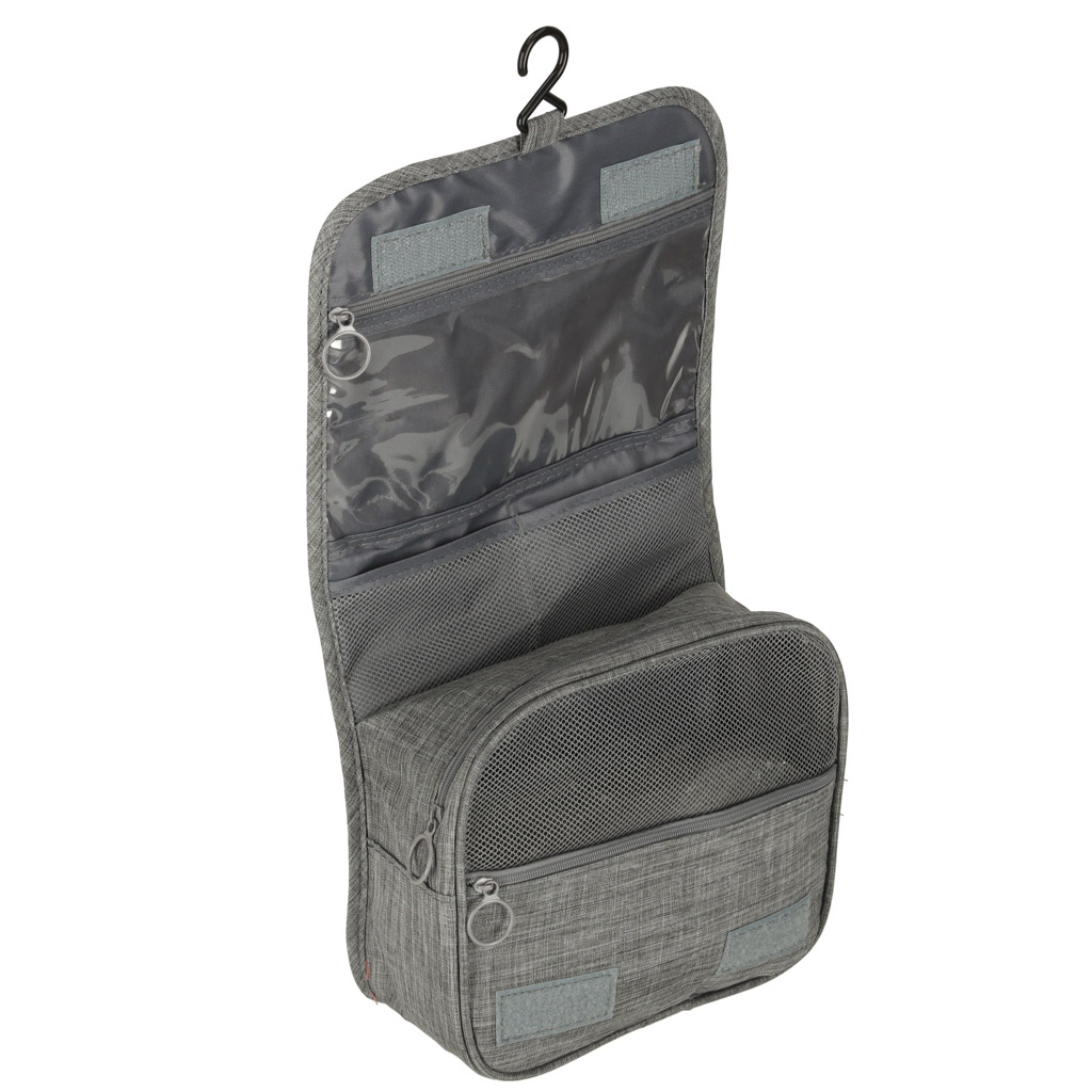 Haczyk umożliwia zawieszenie kosmetyczki na wieszaku czy drzwiach łazienki, co będzie niezwykle przydatne w łazienkach z ograniczoną ilością miejsca.