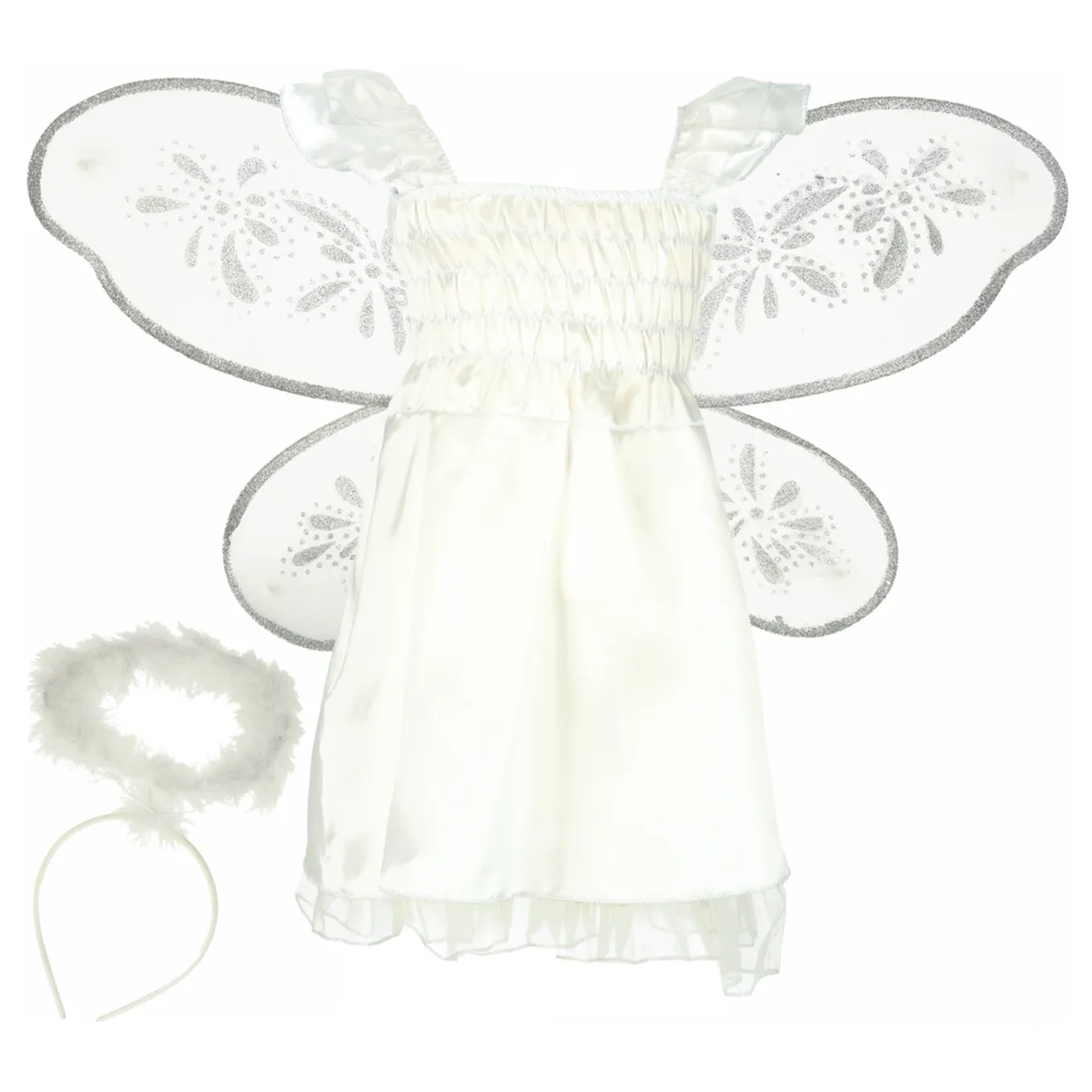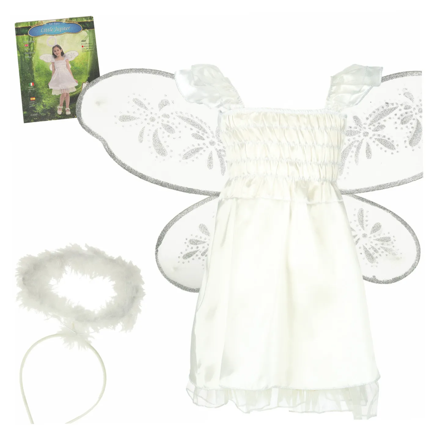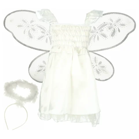 Sukienka z gumką w pasie zapewni pełną swobodę ruchów, co przedkłada się na wygodę noszenia. Rozkładane skrzydełka mają brokatowe elementy, które podkreślają unikalny wygląd kostiumu. Na aureoli znajdują się prawdziwe piórka, przez co strój aniołka zyskuje charakterystyczny sznyt.