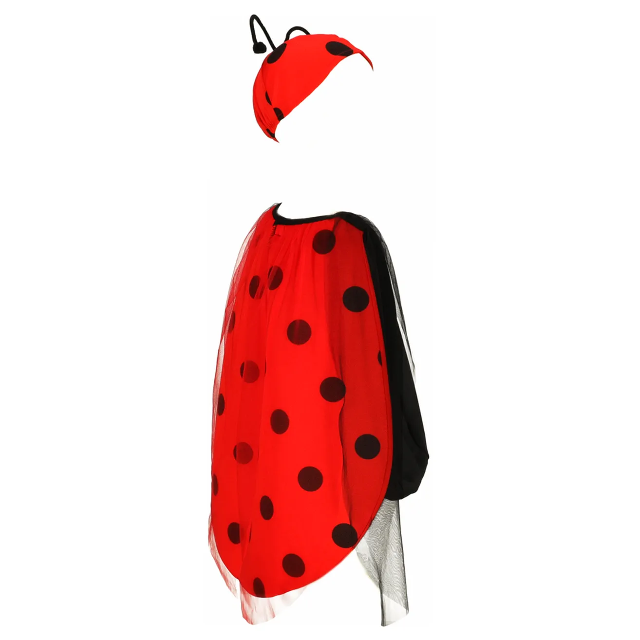 Kostium biedronki wykonany z trwałego materiału, z wygodnym zapięciem na rzep. W zestawie lekka peleryna oraz czapka z miękkimi czułkami. Niewielka waga, solidne szycie i odporność na zagniecenia zapewniają łatwe użytkowanie i przechowywanie