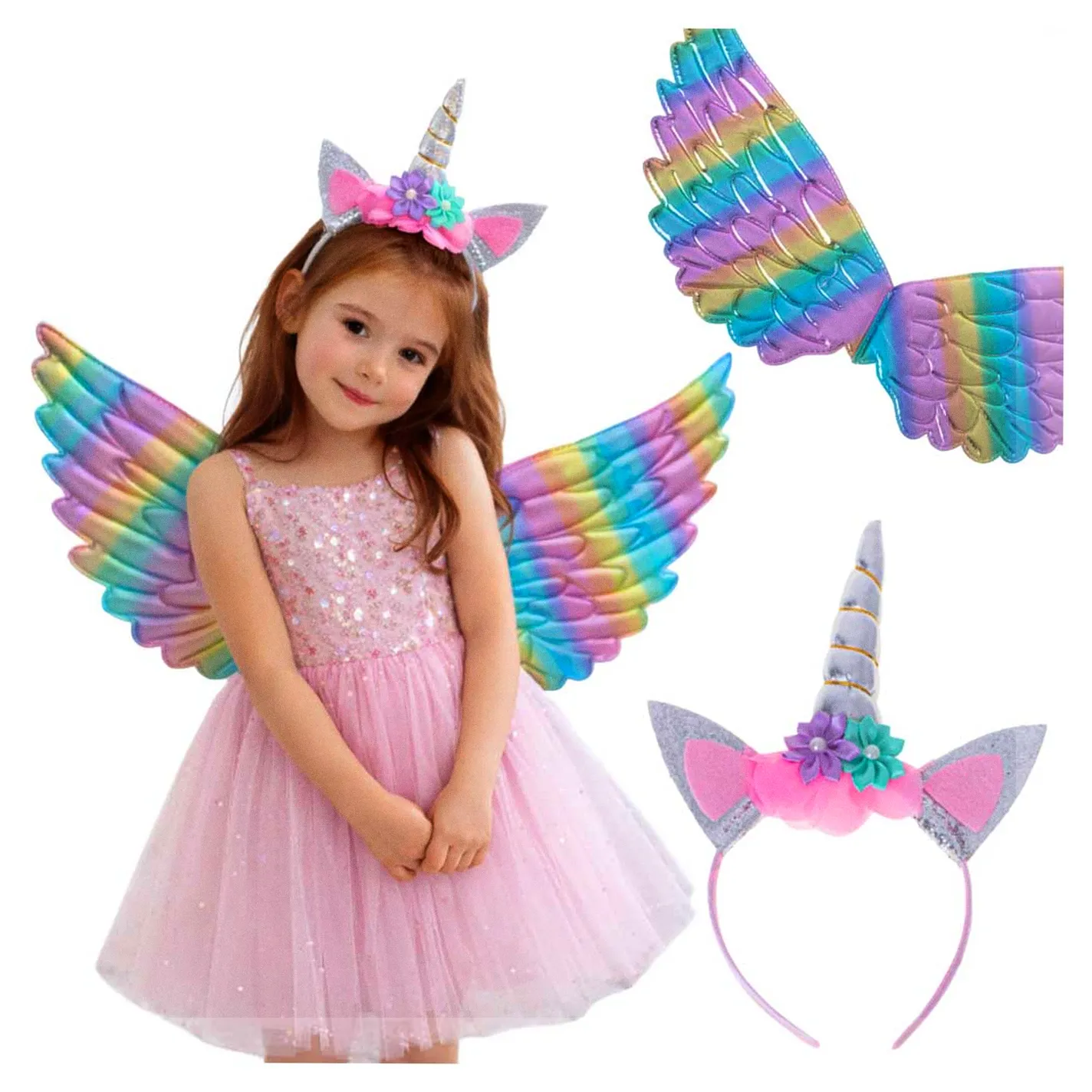 Kostium strój karnawałowy przebranie jednorożec przebranie skrzydła opaska tęczowe
