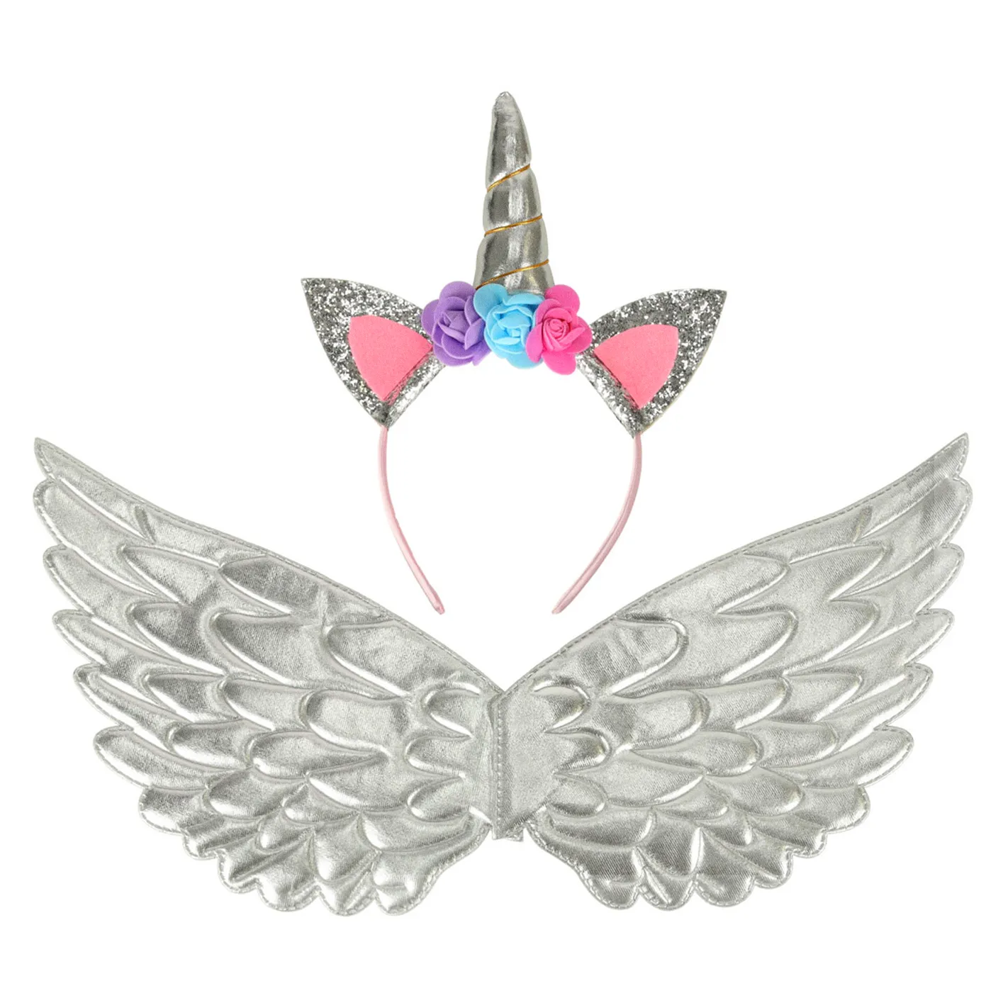 • Zestaw uzupełnia opaska jednorożca i skrzydła, tworząc spójne, wyjątkowo urocze przebranie pełne charakteru i baśniowego uroku