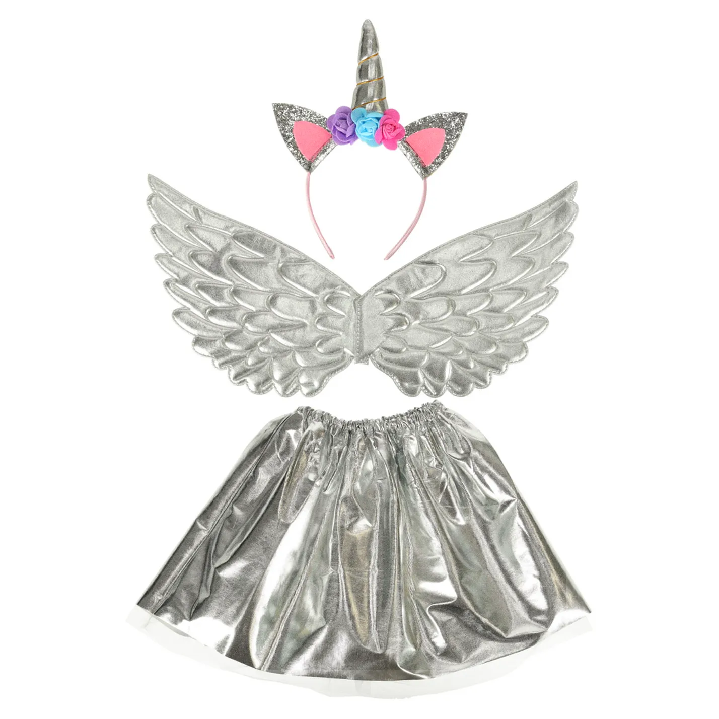 Kostium strój karnawałowy przebranie jednorożec spódnica opaska srebrny