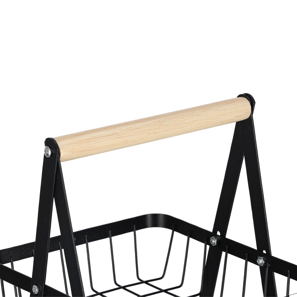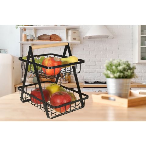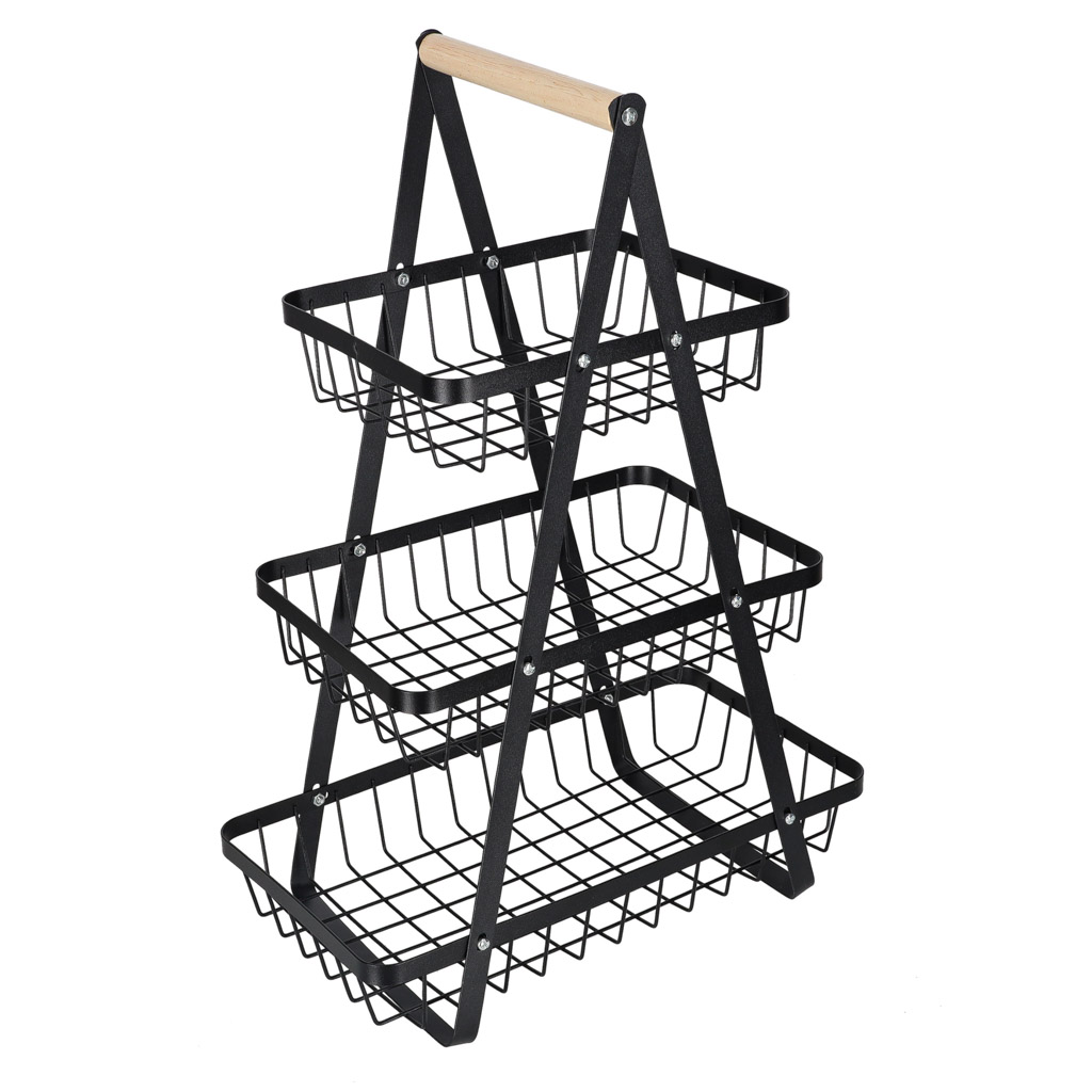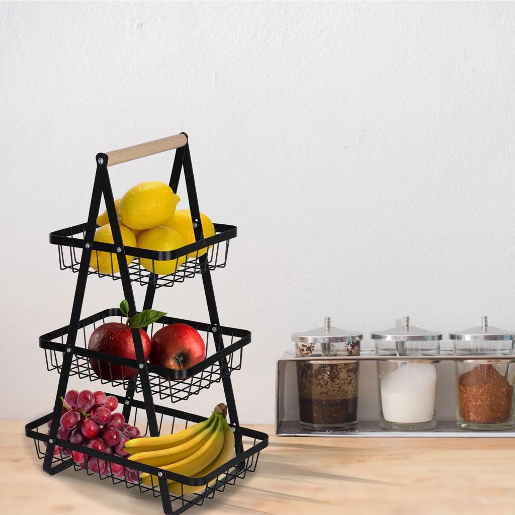 Kosz na owoce czarny trzypoziomowy piętrowy metal drewno