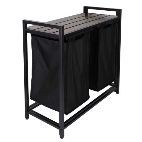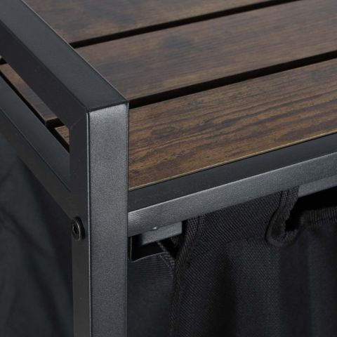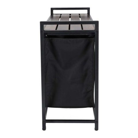 Kosz na pranie ma ciekawy design, który łączy funkcjonalność z modną loftową estetyką. Można go umieścić nie tylko w łazience ale także w salonie lub w sypialni. Na półce można umieścić między innymi detergenty, środki czyszczące, kosmetyki lub kwiaty – to miejsce do dowolnej aranżacji. Uchwyty umożliwiają wygodne przenoszenie kosza między pokojami.