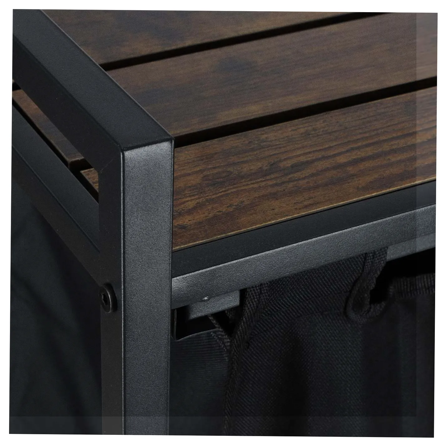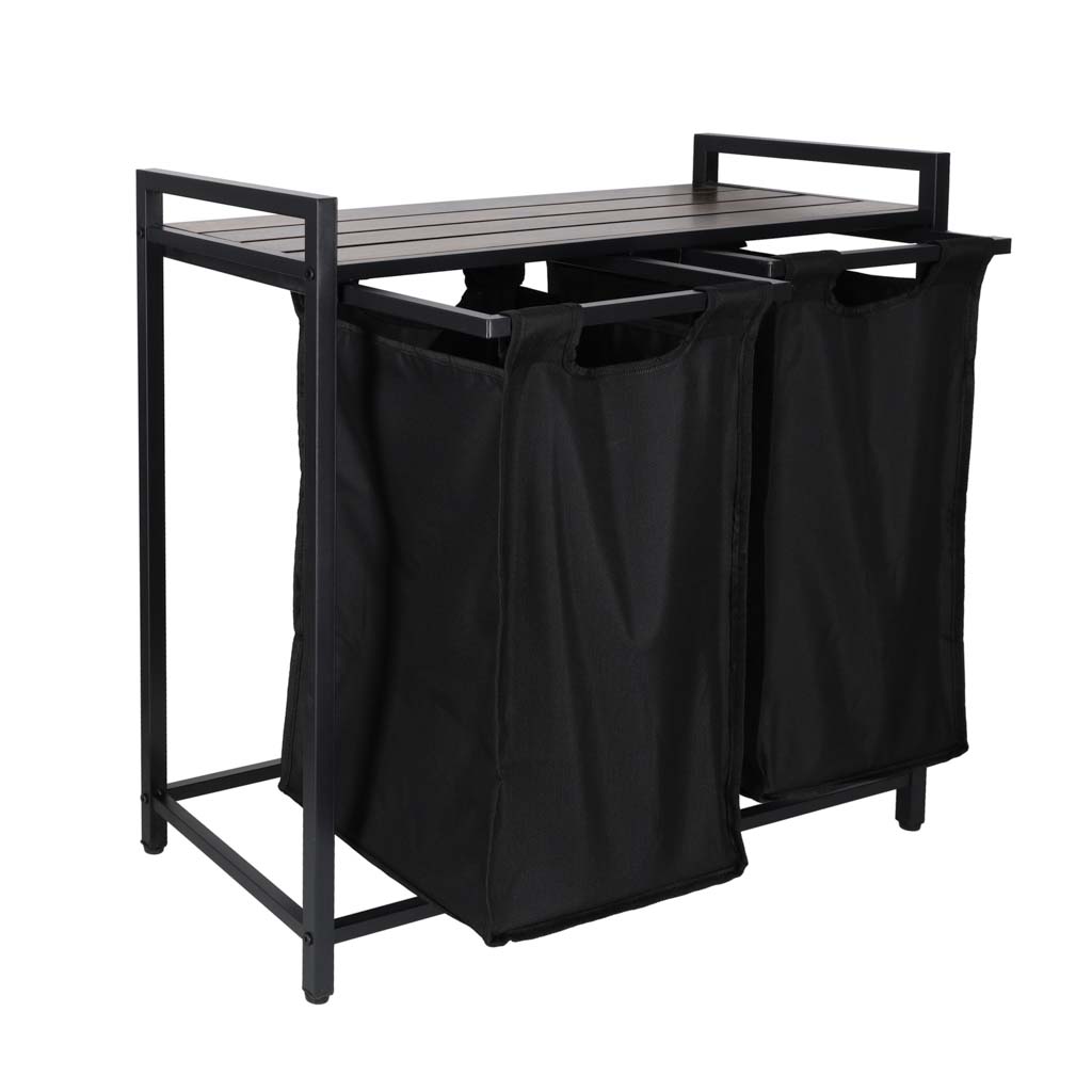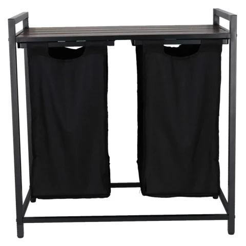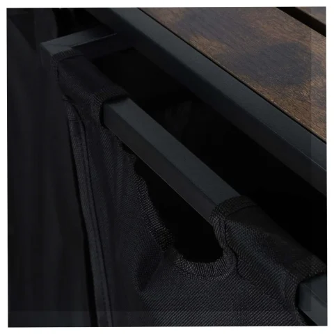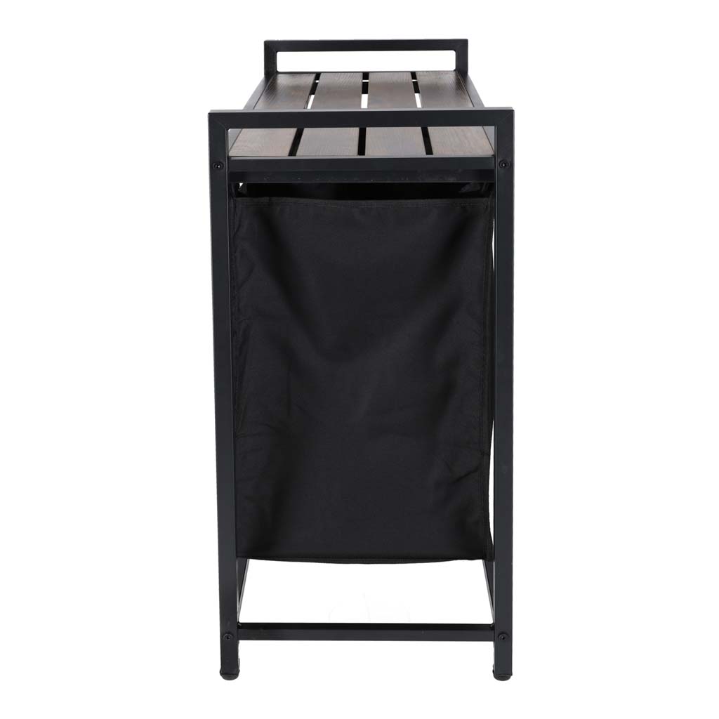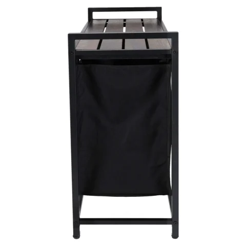 Kosz na pranie ma ciekawy design, który łączy funkcjonalność z modną loftową estetyką. Można go umieścić nie tylko w łazience ale także w salonie lub w sypialni. Na półce można umieścić między innymi detergenty, środki czyszczące, kosmetyki lub kwiaty – to miejsce do dowolnej aranżacji. Uchwyty umożliwiają wygodne przenoszenie kosza między pokojami.