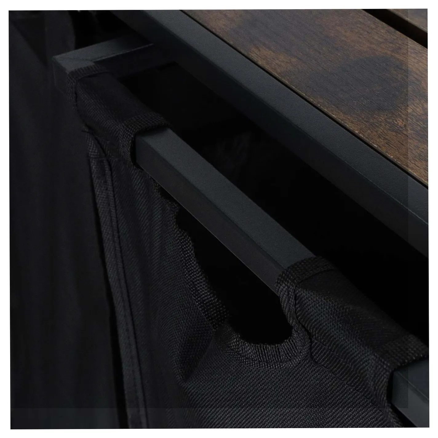 - Jest praktyczny i funkcjonalny – dwa wysuwane materiałowe kosze w połączeniu z półką znajdzie wiele zastosowań w gospodarstwie domowym