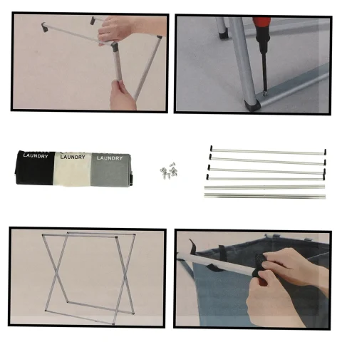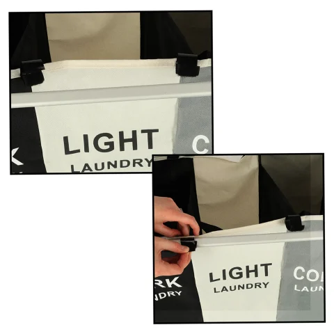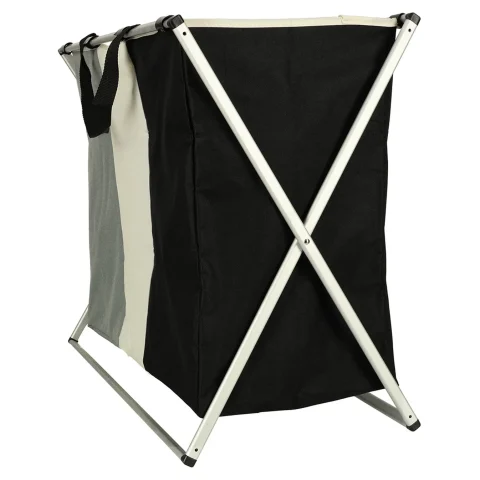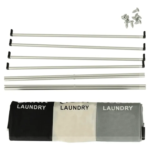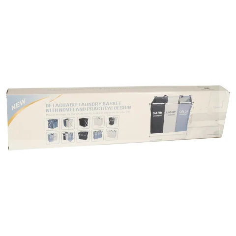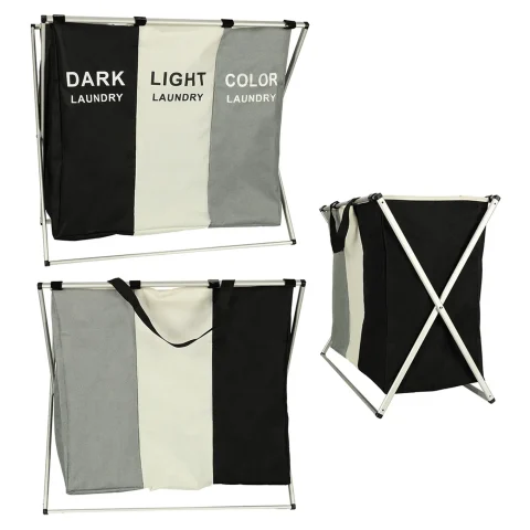 Trójkomorowy kosz na pranie – ułatwia rozdzielenia ubrań na jasne, ciemne i kolorowe. Aluminiowa konstrukcja gwarantuje wytrzymałość, a wodoodporny materiał doskonale sprawdzi się w łazience. Łączna pojemność: 135 litrów. Wymiary: 65 x 58 x 36,5 cm.