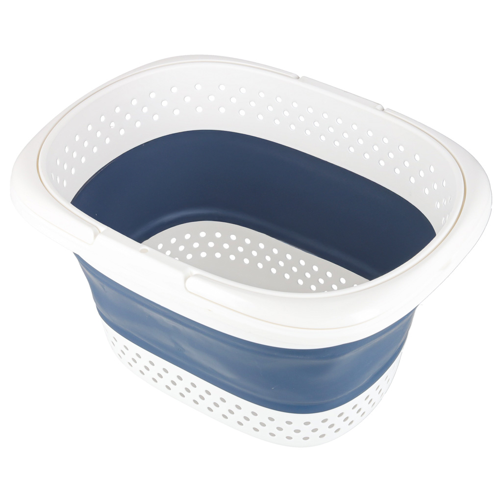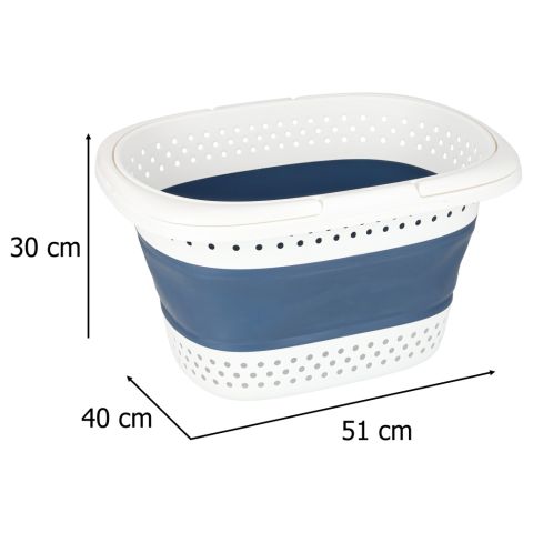 Składany kosz na pranie silikonowy 32L wykonany z trwałego tworzywa i elastycznego silikonu. Wymiary: 51×40×30 cm, po złożeniu 10 cm. Waga 1,1 kg. Lekki, pojemny, łatwy w czyszczeniu, odporny na wilgoć i odkształcenia. Idealny do łazienki lub pralni