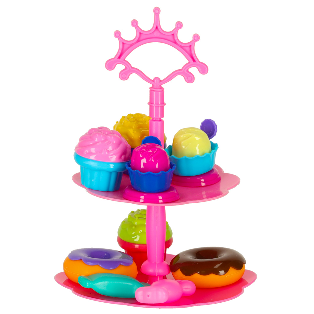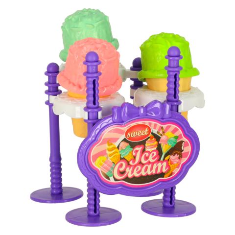 W zestawie znajdują się liczne elementy zabawkowe: lody, deserki, a także kubek, tacka, stojak na lody, łyżka do lodów i inne akcesoria, które wypełnią każdą zabawę wyobraźnią i smakiem. Dopełnieniem całości jest kolorowa cerata, na której można zaaranżować mini cukiernię.
