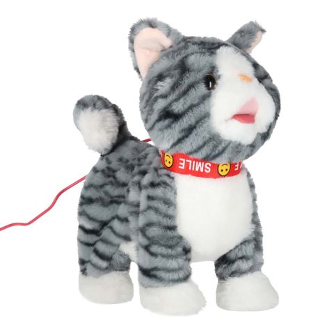Kotek interaktywny na smyczy miauczy chodzi rusza ogonem szary