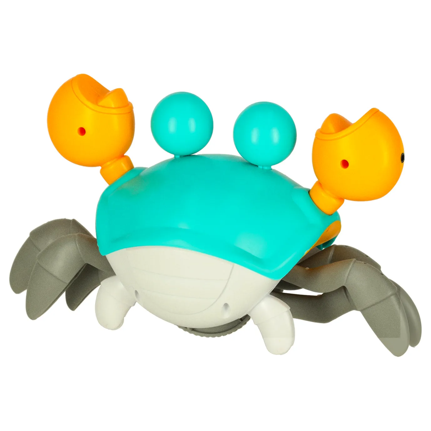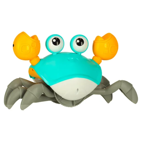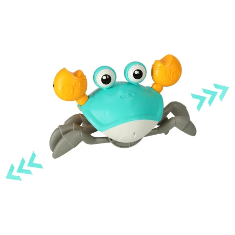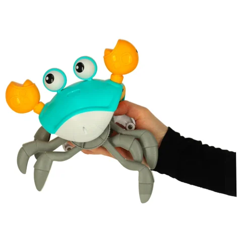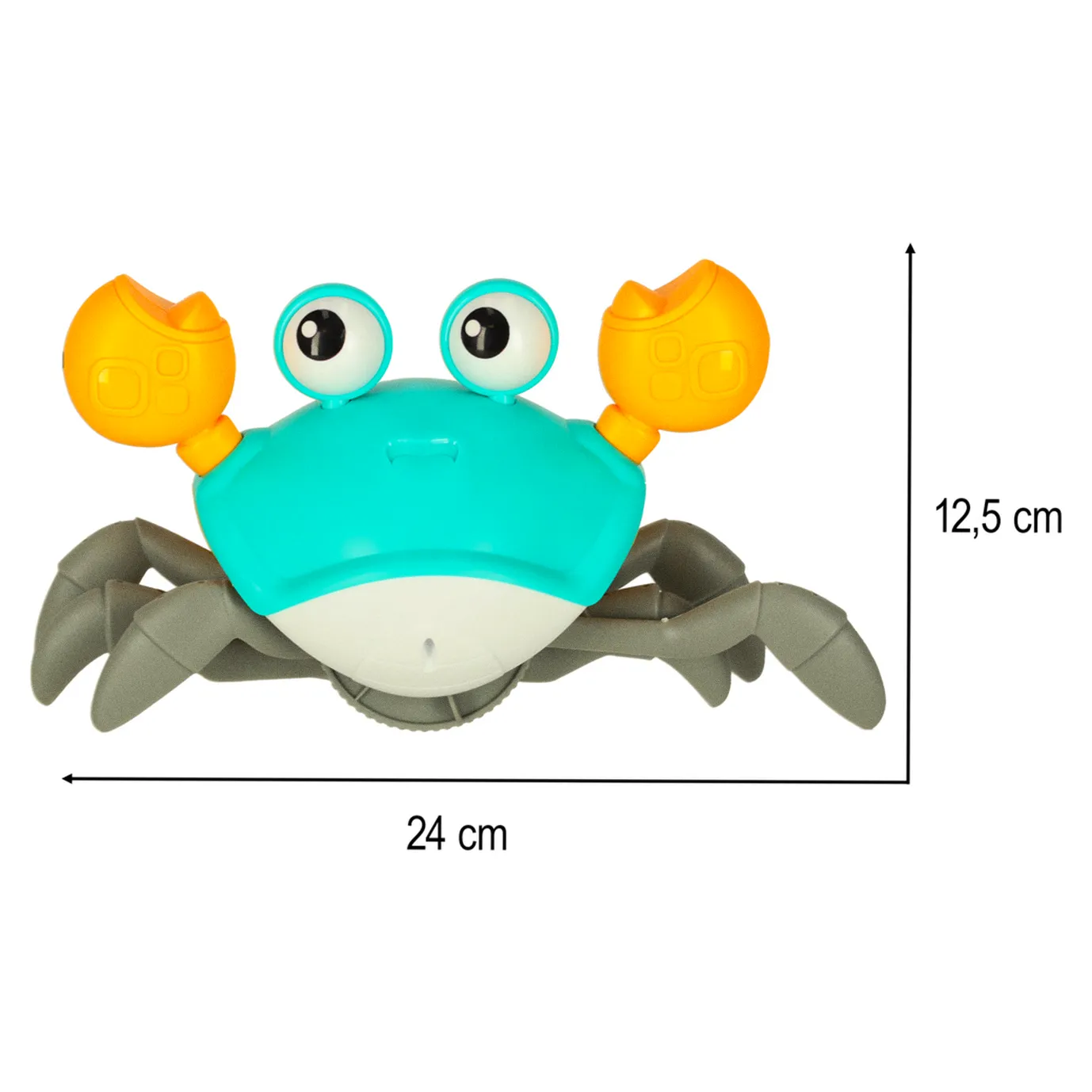 Uroczy zielony krab, który zapewni dużo rozrywki najmłodszym. Zwierzak gra muzykę i pełza – czy dzieci będą w stanie za nim nadążyć? Trzeba się przekonać! Tworzywo: plastik. Wiek: 3+. Zasilanie: wbudowany akumulator. Krab: 24 x 12,5 x 10,5cm