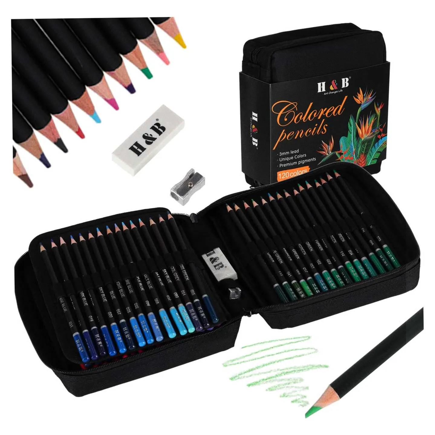 Zestaw profesjonalnych kredek 120 w 1 oferuje bogatą paletę barw o wysokim nasyceniu i trwałości. Wysoka jakość pigmentów, rdzeń 3 mm, kredki wykonane z trwałego drewna, wygodne etui, gumka i temperówka w zestawie – komplet dla wymagających artystów.