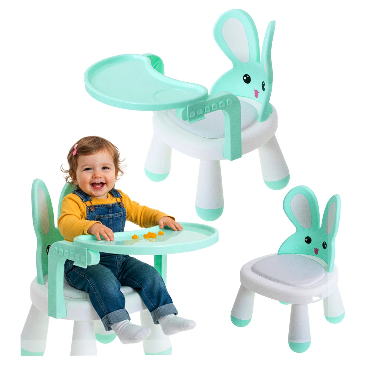 Ergonomiczny kształt ,,wymusi” na dziecku prawidłową i bezpieczną postawę podczas jedzenia. Uszy króliczka będą doskonałym oparciem pod plecy. Wygodne siedzisko z poduszeczką zapewni komfortowy odpoczynek dziecku.