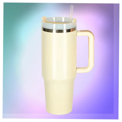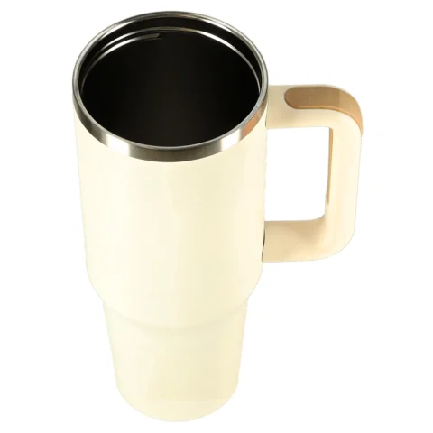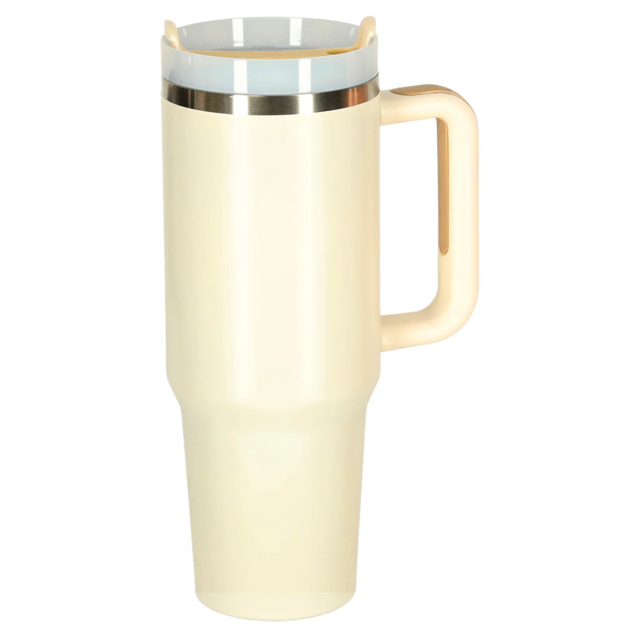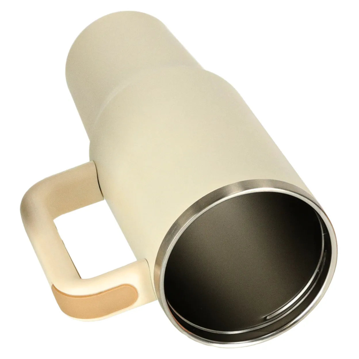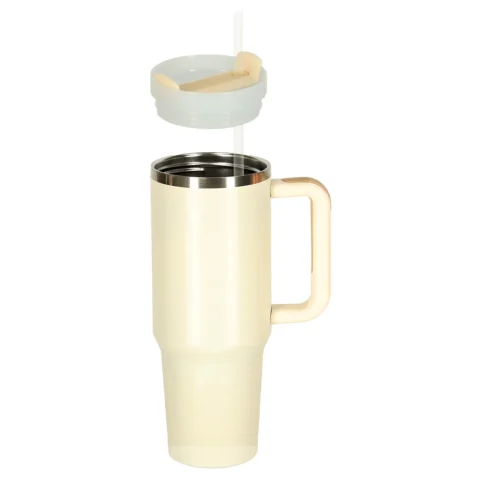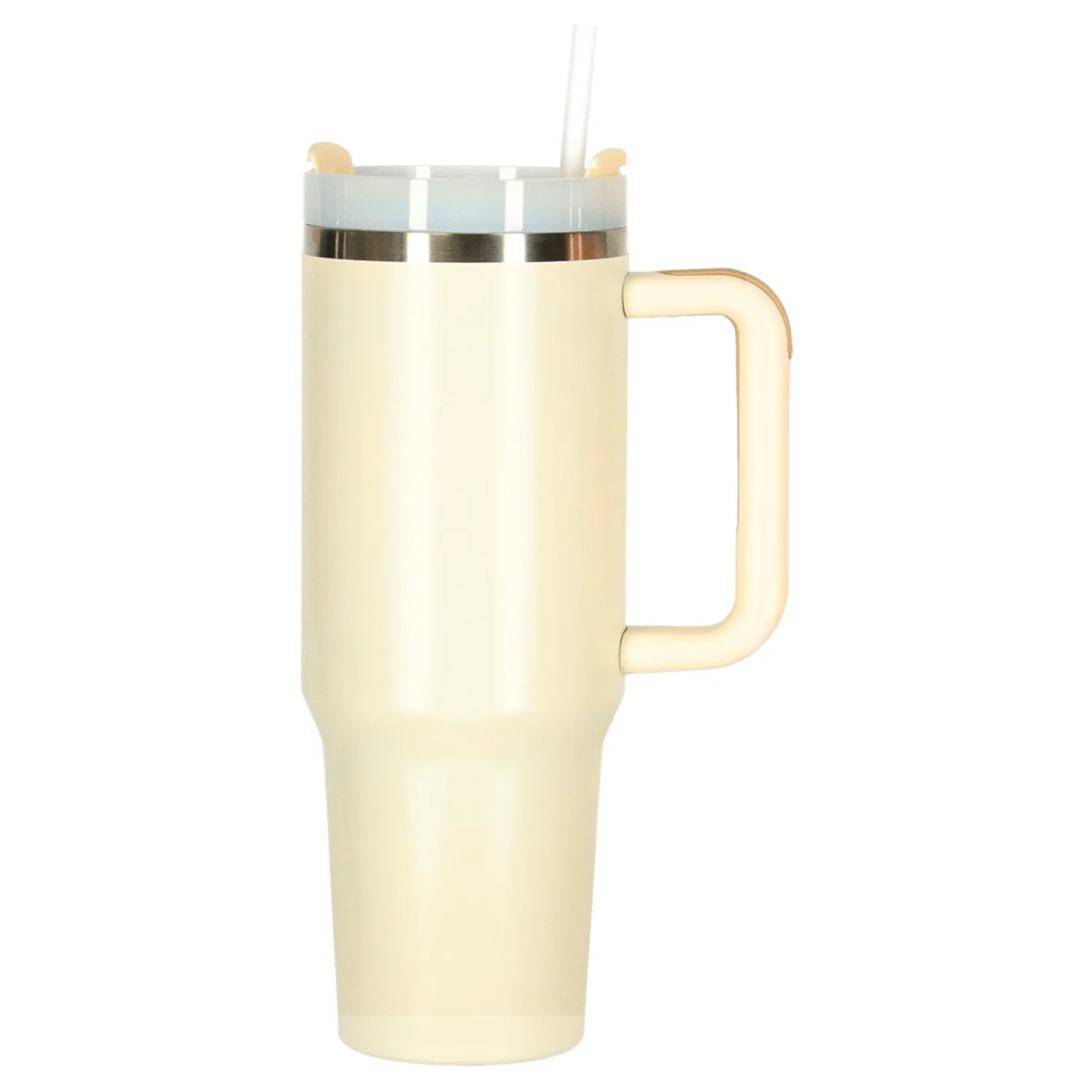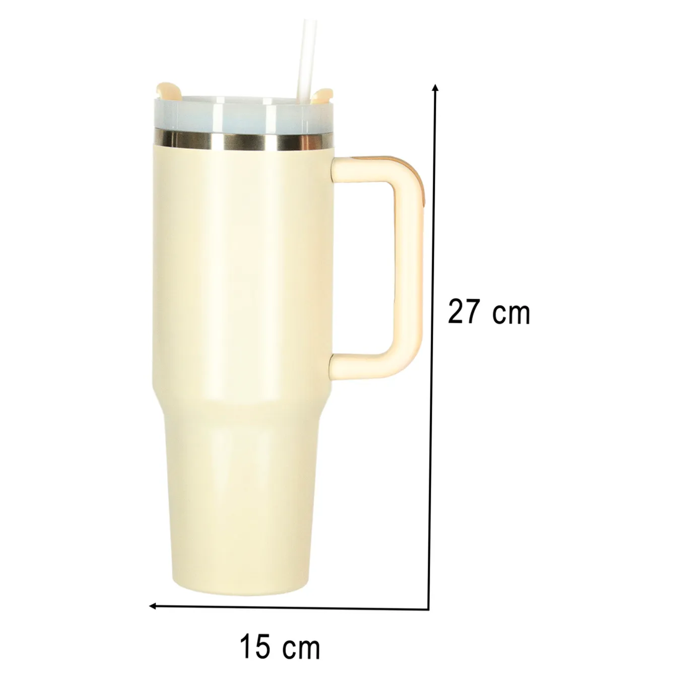 DUŻY KUBEK TERMICZNY Z UCHWYTEM 1,2L – STALOWY KUBEK TERMICZNY ZE SŁOMKĄ – IDEALNY DO WODY KREMOWY