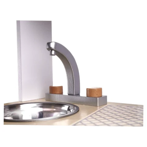 Metalowy zlew z łatwością można wyjąć i napełnić wodą! Pozwól małemu kucharzowi samemu umyć owoce na deser albo warzywa podane do obiadu! Dzięki temu będzie dumny, że może uczestniczyć w przygotowaniu posiłku i zdecydowanie bardziej go doceni!