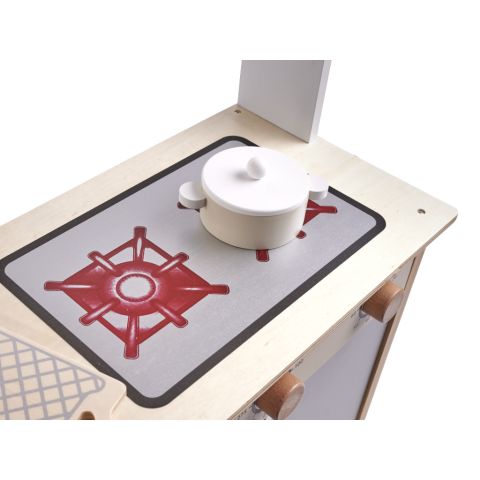 Ta kuchnia jest idealnym rozwiązaniem dla osób, które lubią dbać o środowisko! Jeśli dobry stan przyrody jest dla Ciebie ważny, wybierz produkt, który składa się w większości z drewna, dzięki czemu obciąża środowisko wielokrotnie mniej niż jego plastikowe odpowiedniki! Wybierając drewnianą kuchnię zapewniasz nie tylko świetną zabawę swojemu dziecku, ale także dajesz mu możliwość zwiedzania świata w obecnej formie, gdy będzie większe! Dbanie o środowisko nawet w najmniejszych elementach codziennego życia pozwoli na zachowanie natury w nienaruszonej formie.