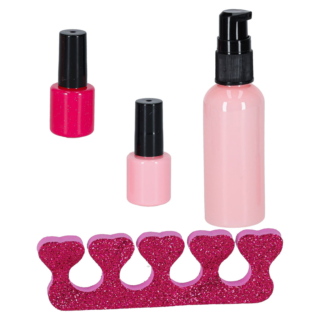Dodatkową atrakcją jest zestaw do stylizacji paznokci, który pozwala tworzyć kolorowy manicure i pedicure w całkowicie bezpieczny sposób. Każdy lakier to realistyczna imitacja, dzięki czemu zabawa wygląda jak prawdziwa, ale nie brudzi i nie pozostawia śladów – cały efekt rozgrywa się w świecie wyobraźni.