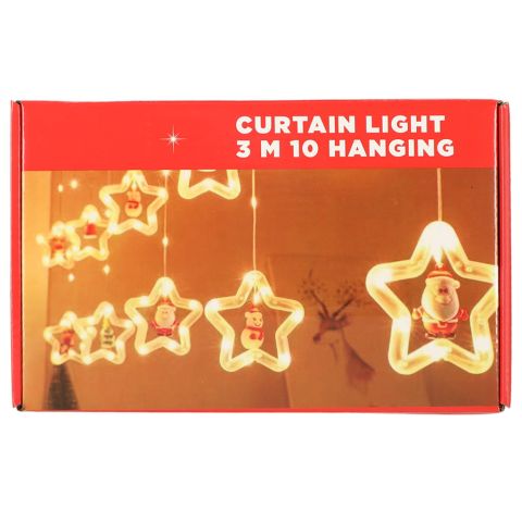 Fantastyczna kurtyna świetlna z świątecznymi figurkami, która nada świątecznego klimatu każdemu wnętrzu! Zasilanie: USB. Ilość lampek: 125LED. Kolor lampek: ciepły biały. Dł. łańcucha: 3m. Dł. dłuższego sopla: 30cm. Wym. opakowania: 23x14x7cm.