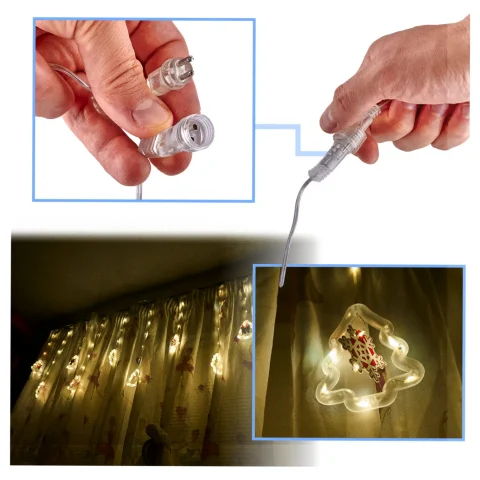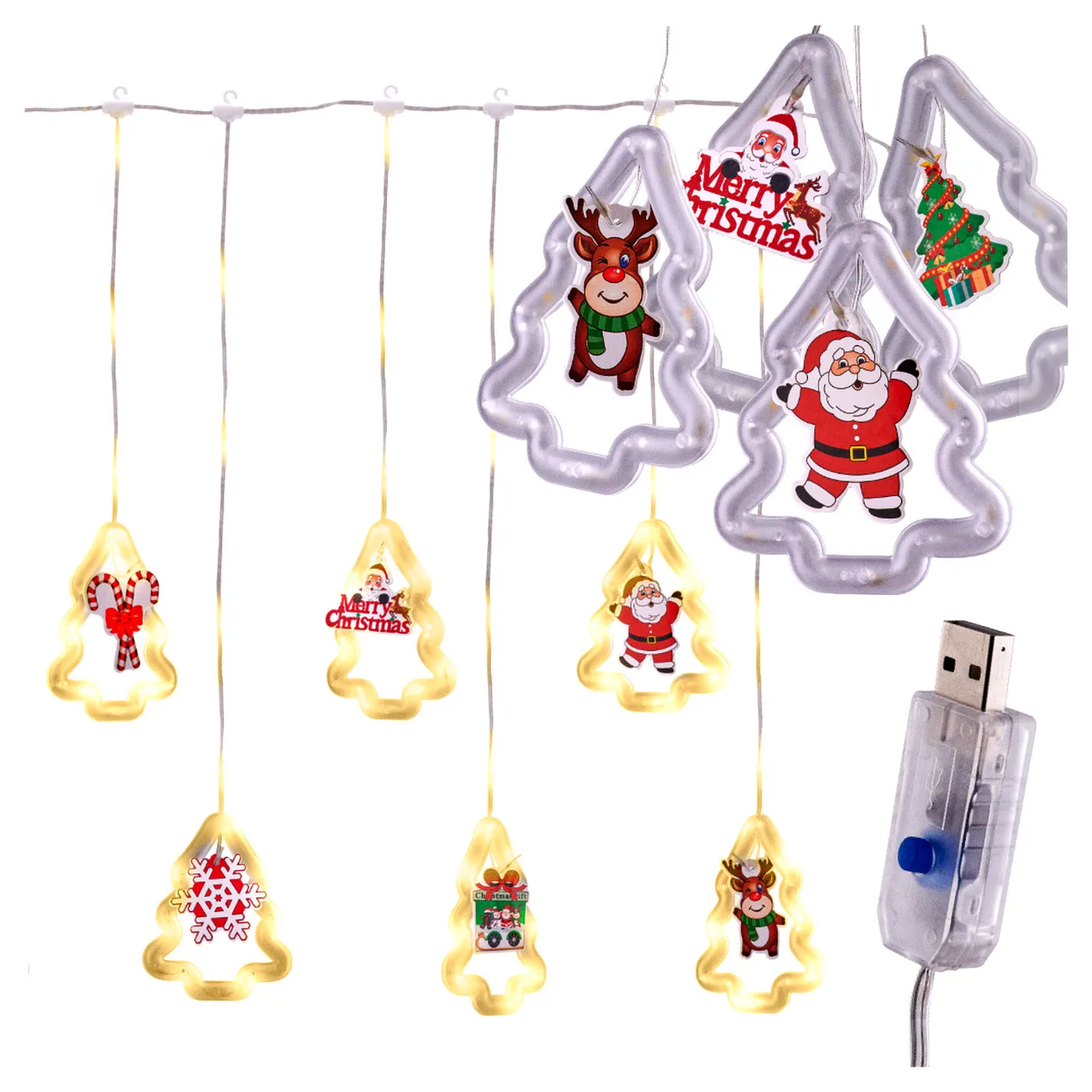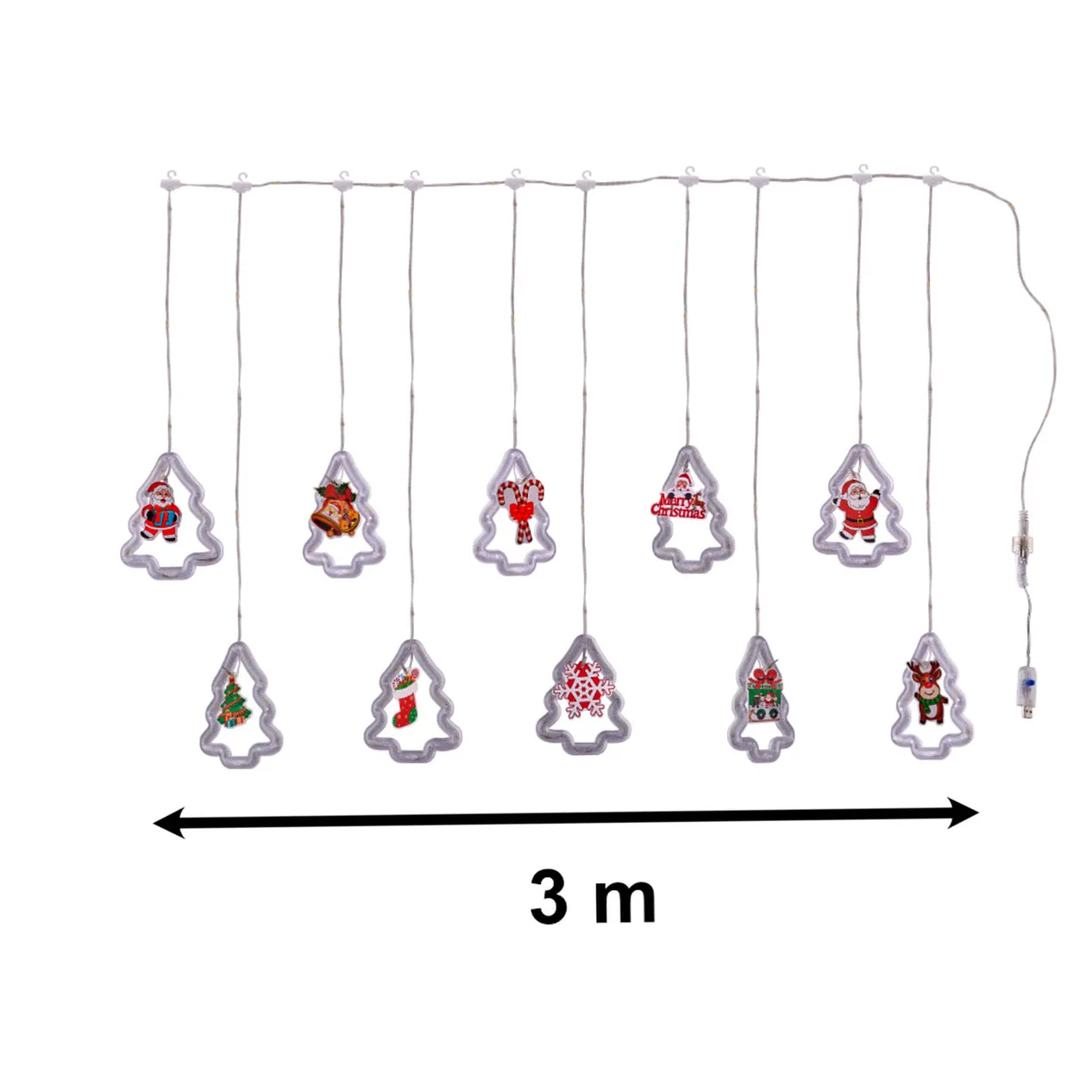 LAMPKI LED KURTYNA Z OBRAZKAMI BOŻE NARODZENIE W CHOINKACH 3M 10 ŻARÓWEK USB