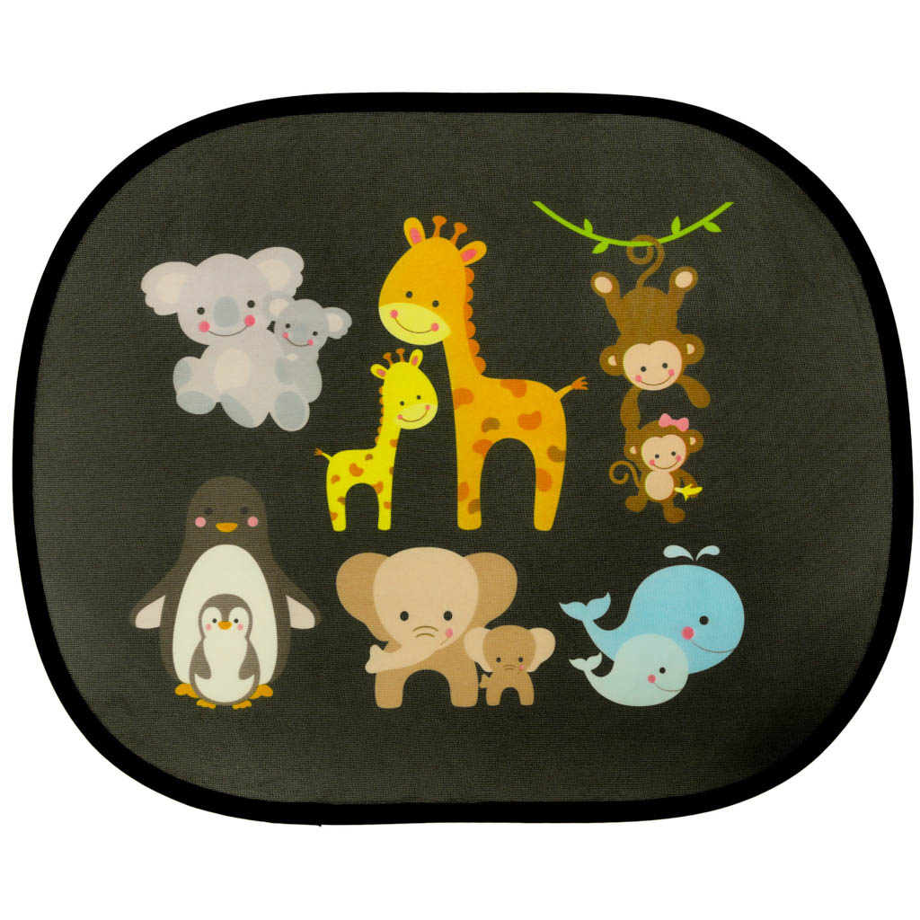 Praktyczny zestaw 2 kurtyn przeciwsłonecznych na okno samochodu z przyjaznymi zwierzętami. Zestaw zapewnia bezpieczną i komfortową podróż. Blokuje promienie słońca i zapobiega nagrzaniu się samochodu. Łatwy i nieinwazyjny montaż. Wymiary: 44x36cm.
