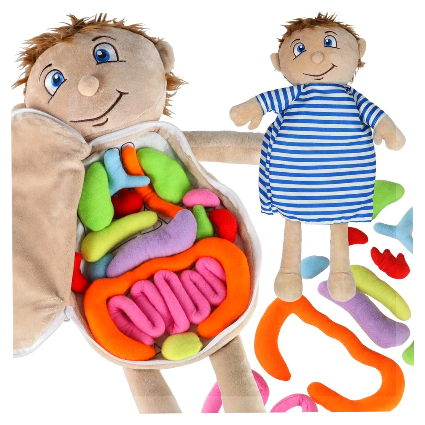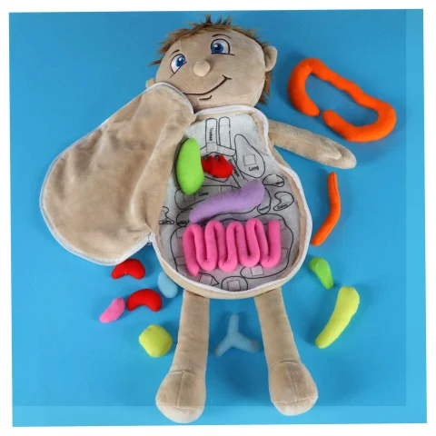 Nasze lalki anatomiczne zawierają realistyczny układ narządów człowieka, który dziecko może samodzielnie odkrywać, poznając części ciała i funkcjonowanie ludzkiego ciała. Kolorowe, miękkie elementy uczą przez do tyk i doświadczenie.