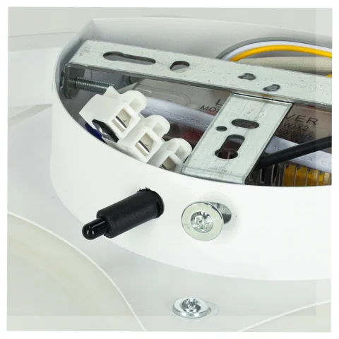 - Jest łatwa w instalacji – lampę można bezproblemowo przykręcić do sufitu dołączonymi do zestawu wkrętami