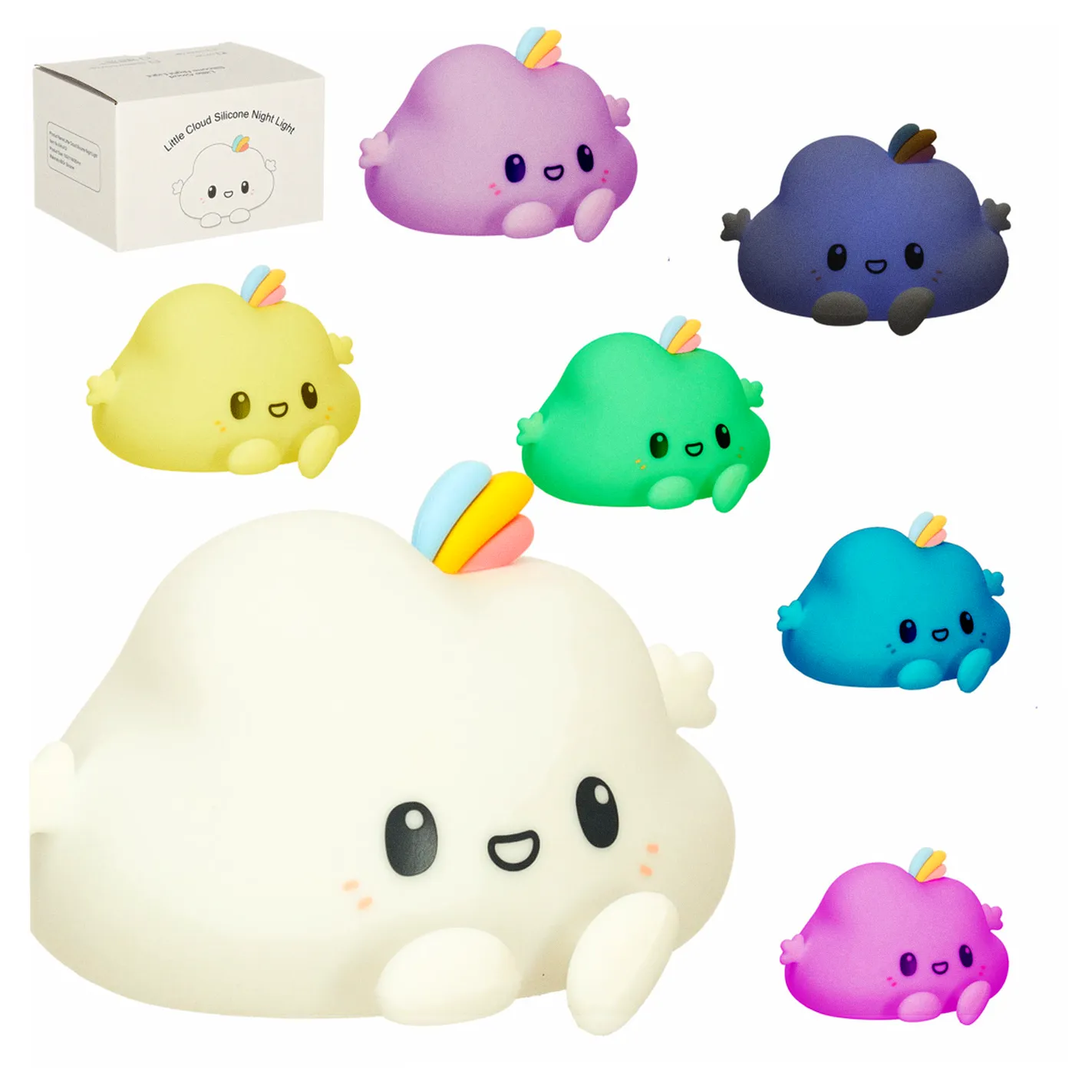 LAMPKA NOCNA DLA DZIECI SILIKONOWA BIAŁA RGB CHMURKA