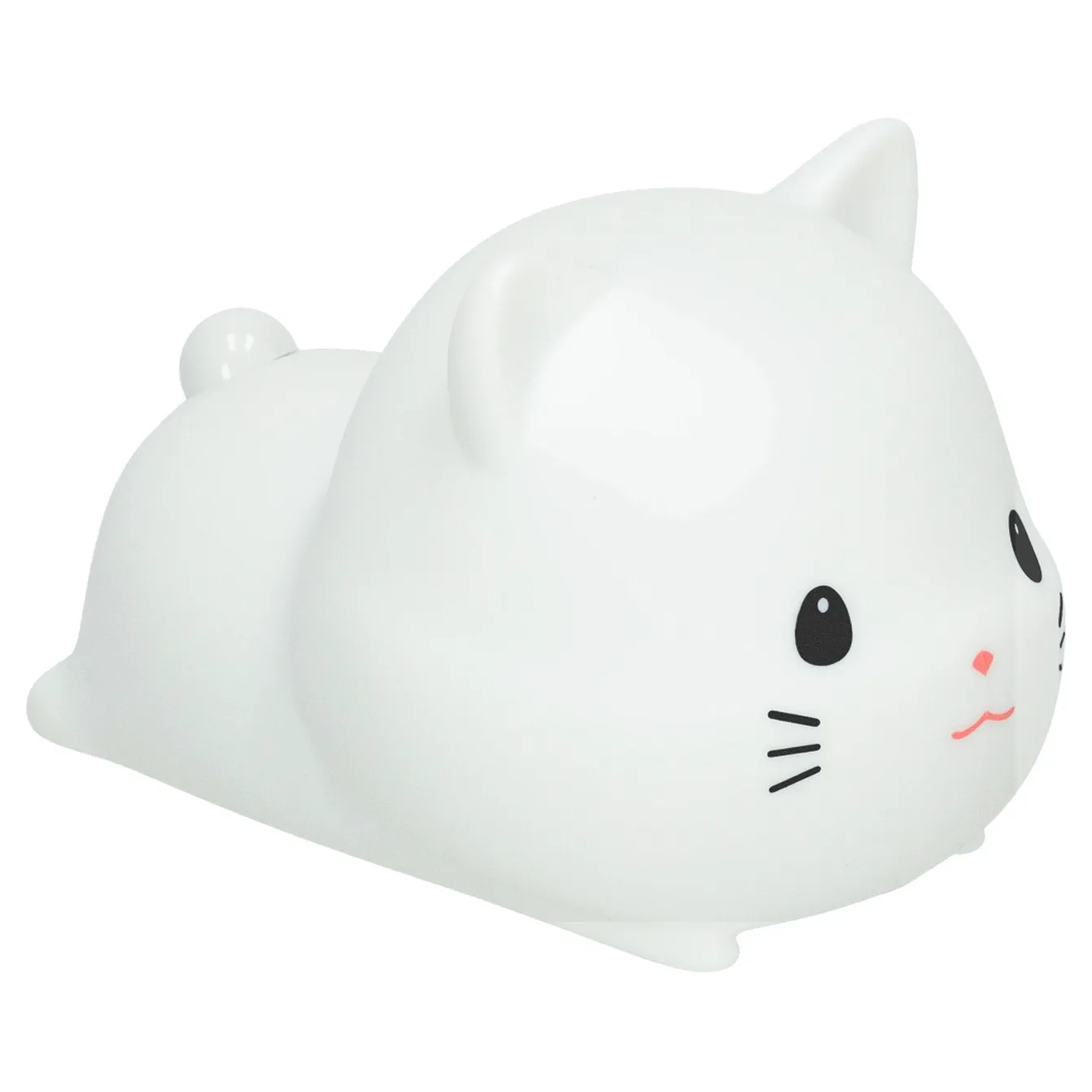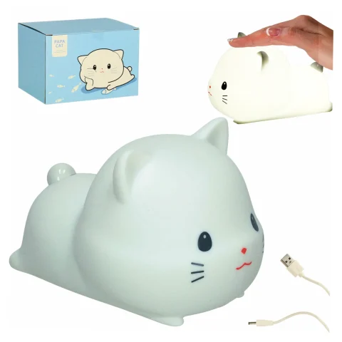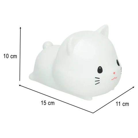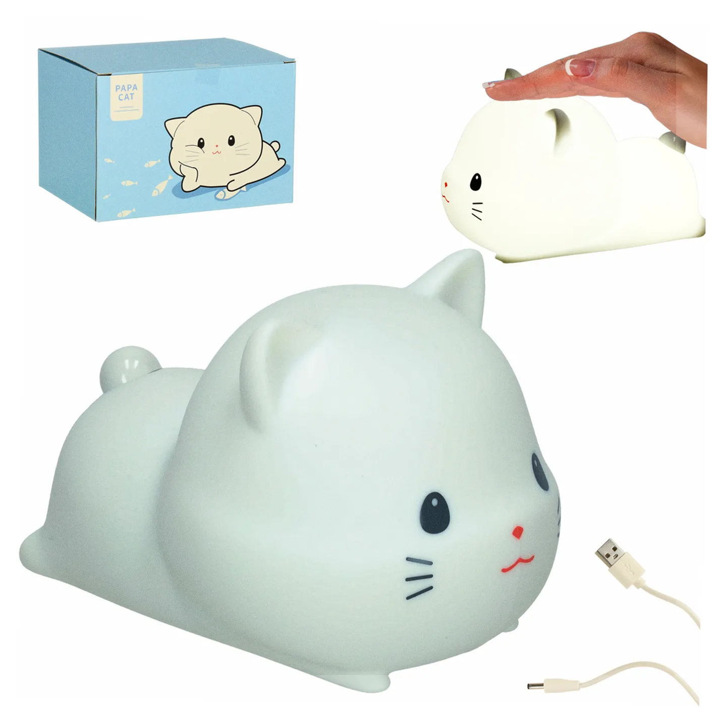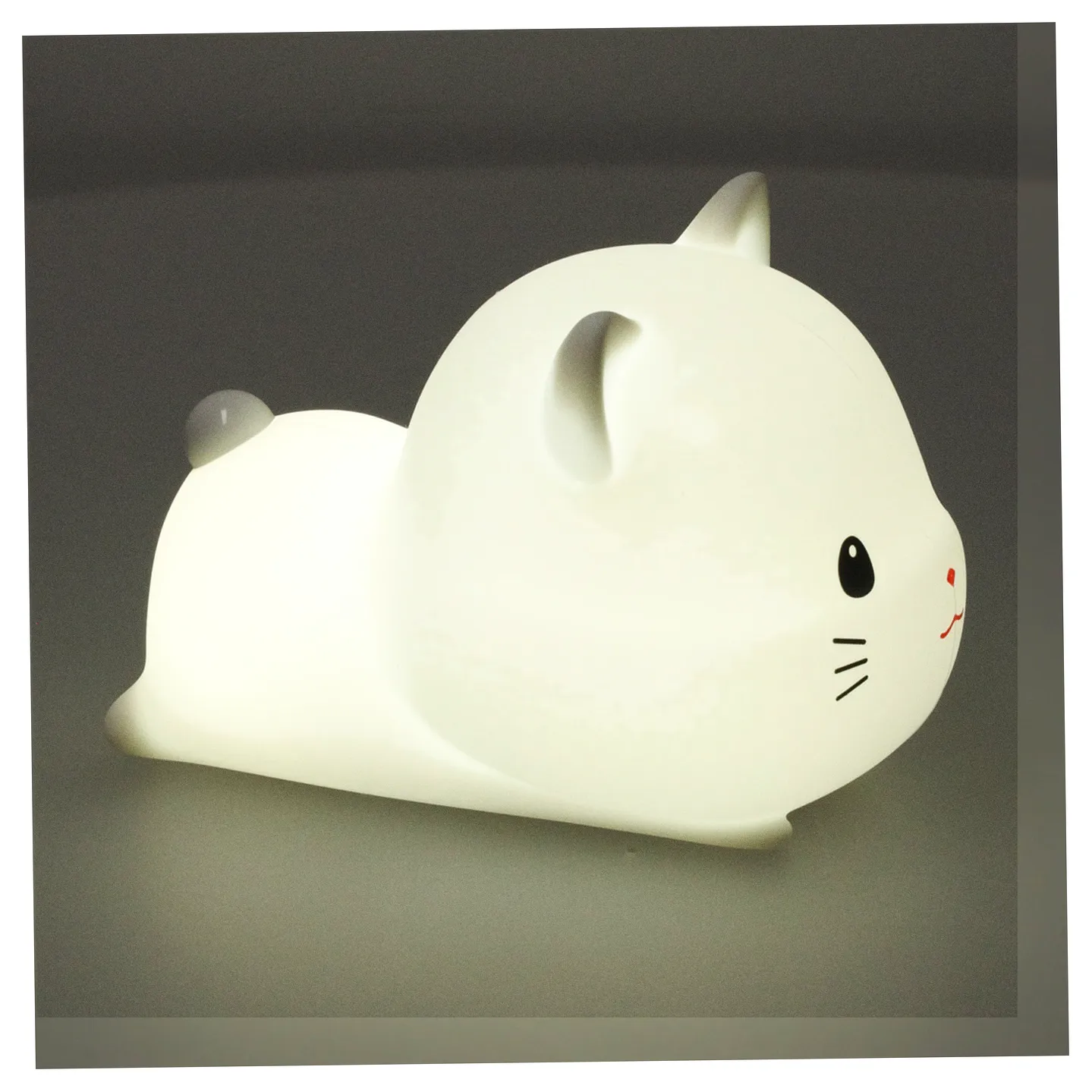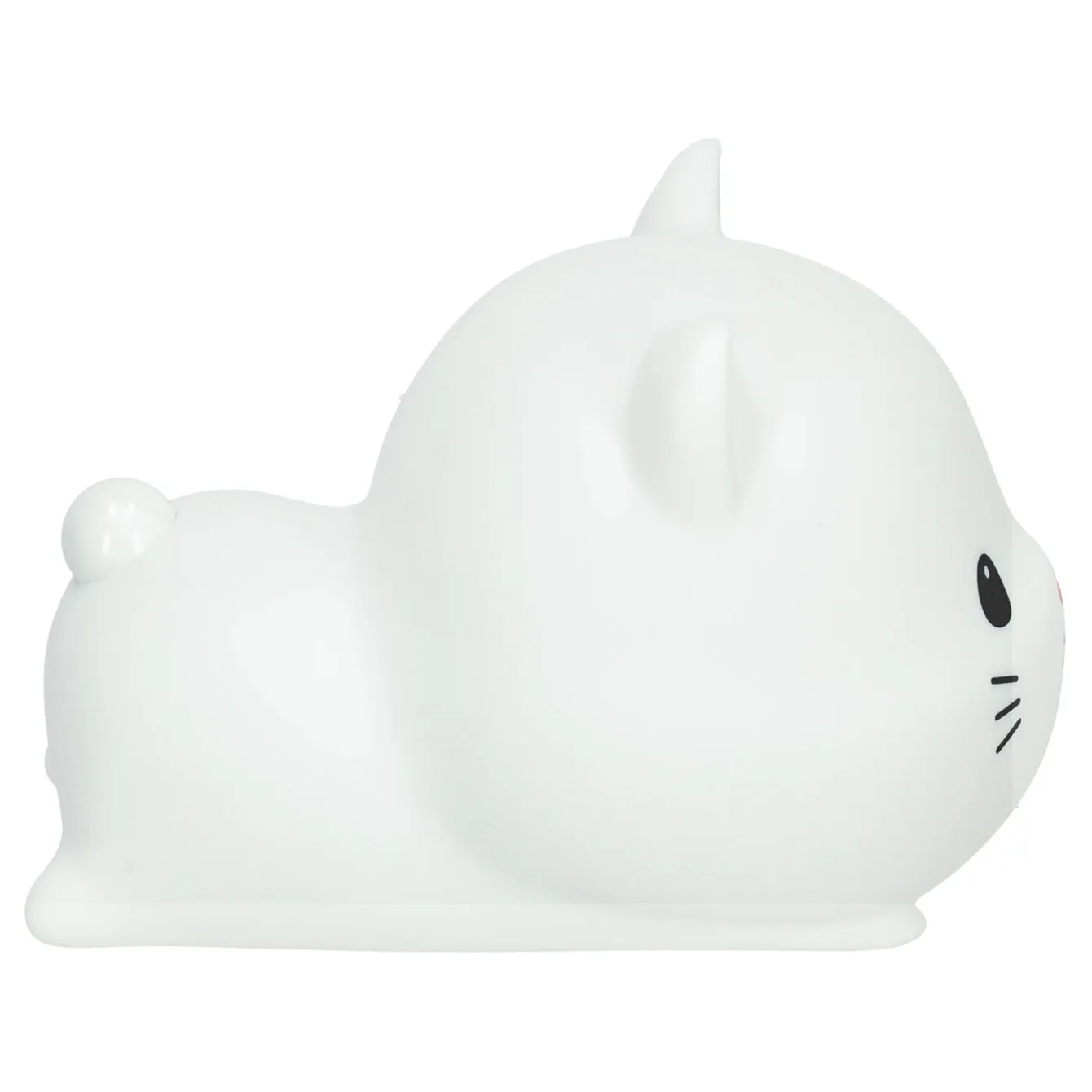 Lampka nocna dla dzieci silikonowa dotykowa miękka USB biała kotek leżący