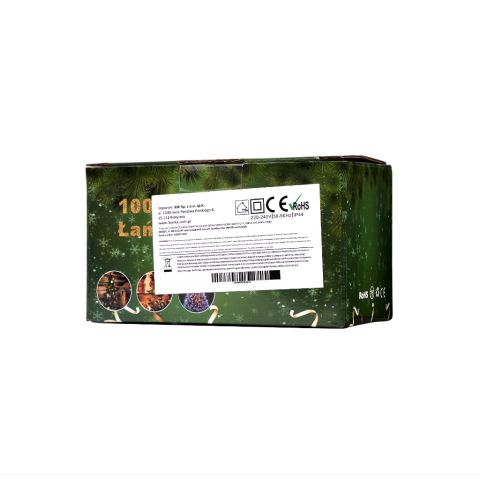 100 lampek na 10 metrach kabla ozdobi pokój, rozświetli bożonarodzeniowe dekoracje oraz świetnie sprawdzi się też, jako lampki choinkowe. Dzięki zastosowaniu zielonego kabla sprytnie go ukryjesz między gałązkami choinki