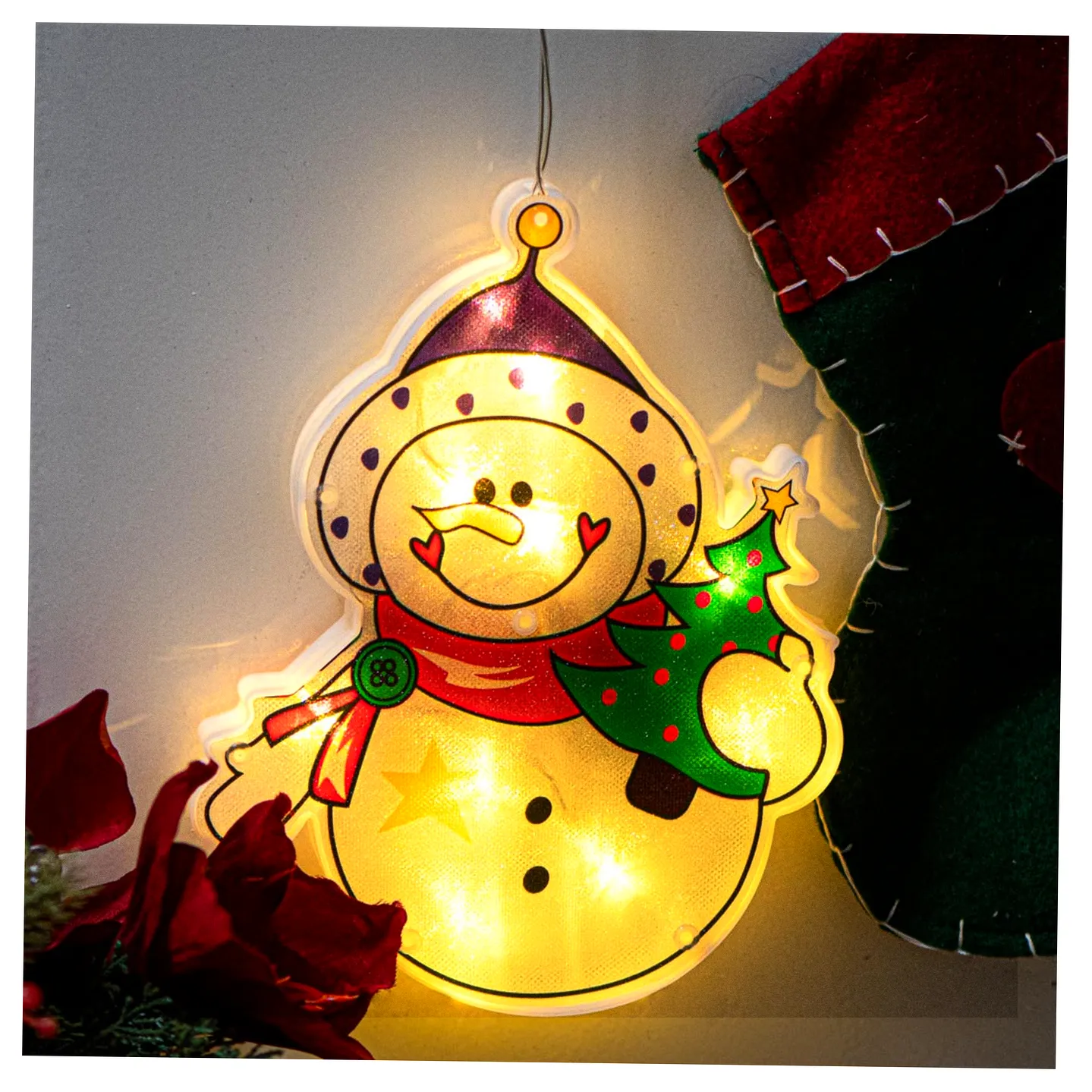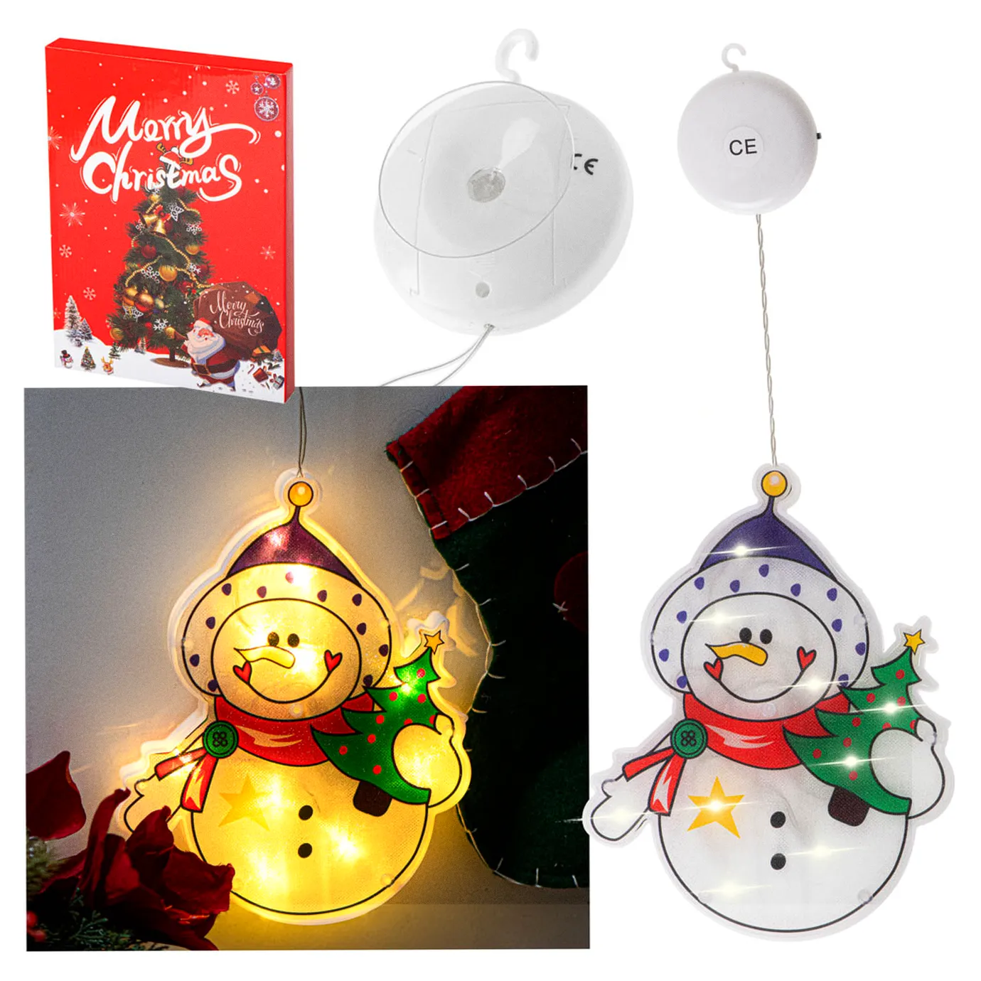 Lampki LED wisząca ozdoba dekoracja okna świąteczna przyssawka bałwan