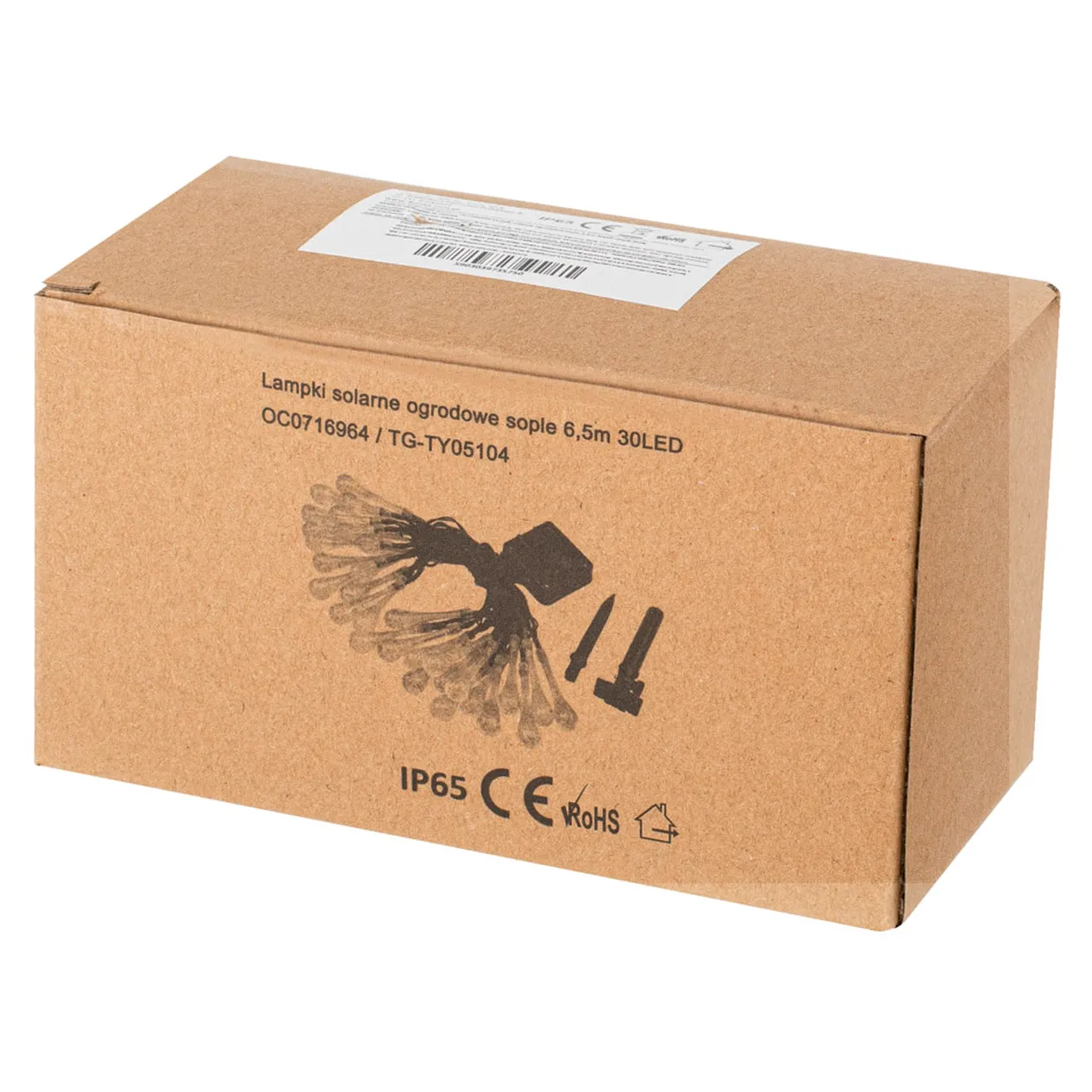 LAMPKI SOLARNE OGRODOWE SOPLE 6,5M 30LED CIEPŁY BIAŁY