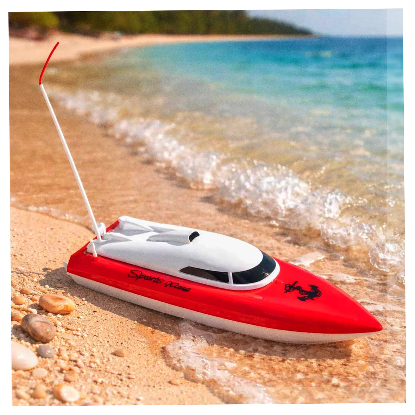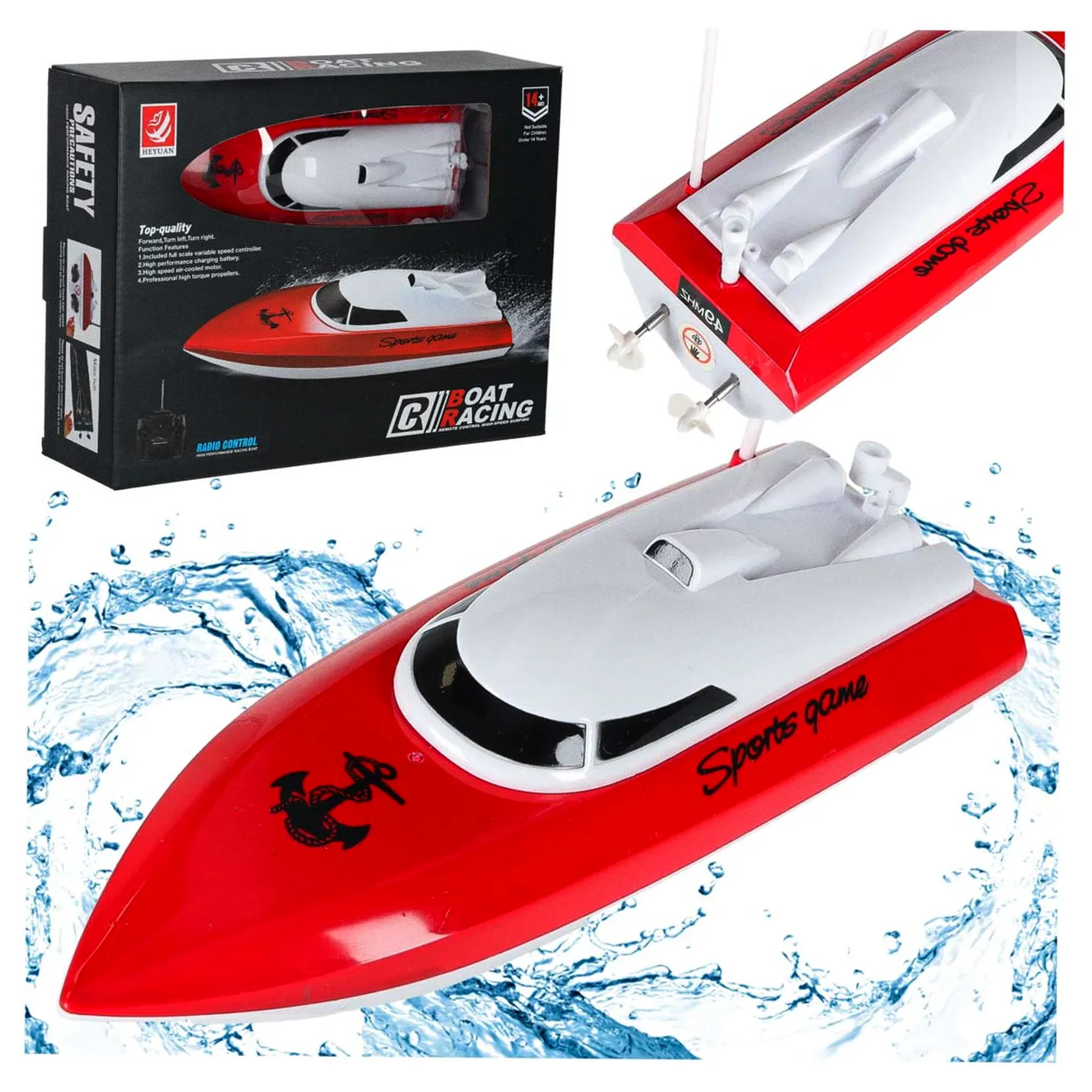 Łodź wyścigowa, zdalnie sterowana to doskonała zabawka dla wielbicieli morskich przygód. Motorówka zasilana jest na akumulator Ni-Cd 3,6V 500mAh. Model zwrotny wykonany z solidnego materiału.