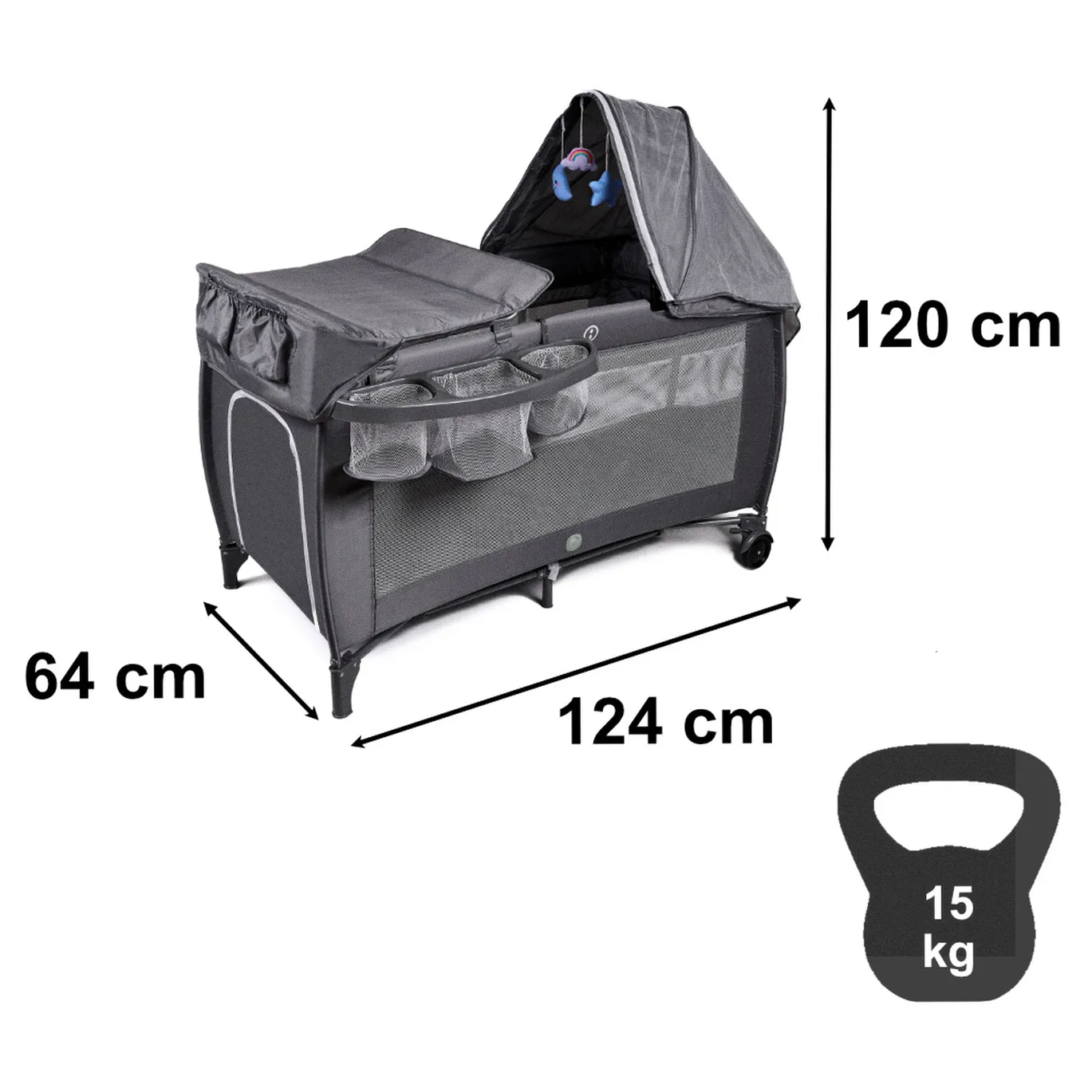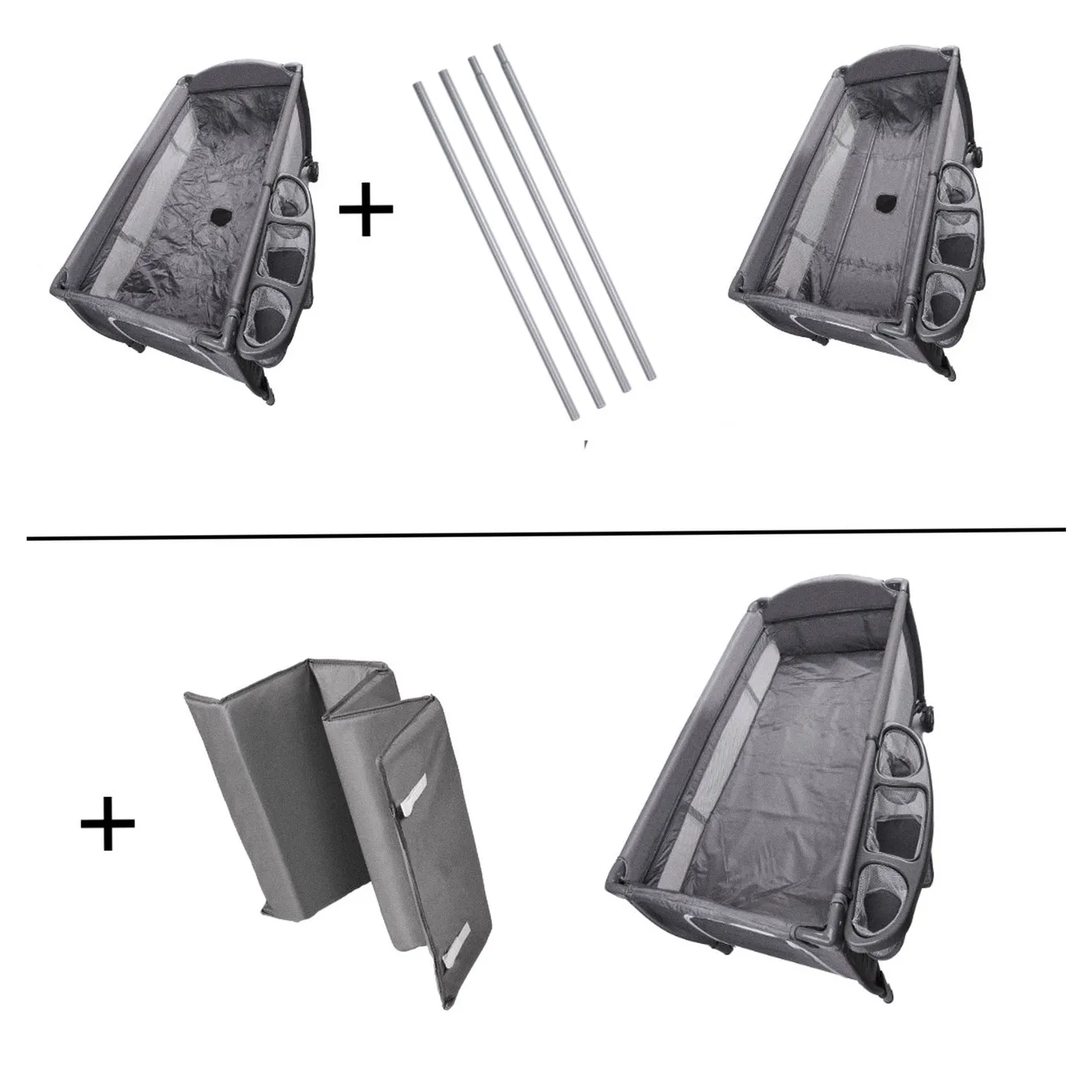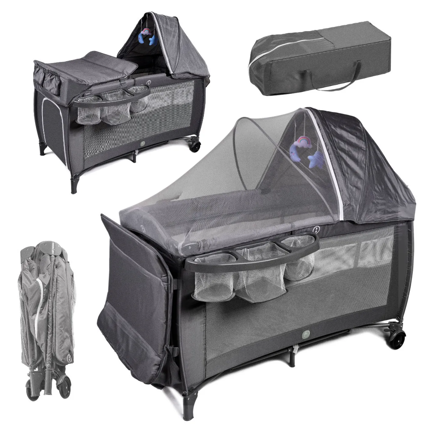 Wielofunkcyjne przenośne łóżeczko dla niemowląt i maluszków to komfortowe rozwiązanie stworzone z myślą o rodzicach. Niezależnie od tego, czy wybieracie się na sezonowy urlop czy jesteście ciągle w drodze – łóżko z pewnością sprosta Waszym oczekiwaniom. Stelaż ma ukryty mechanizm, który pozwala na proste złożenie i rozłożenie łóżka w każdych warunkach.
