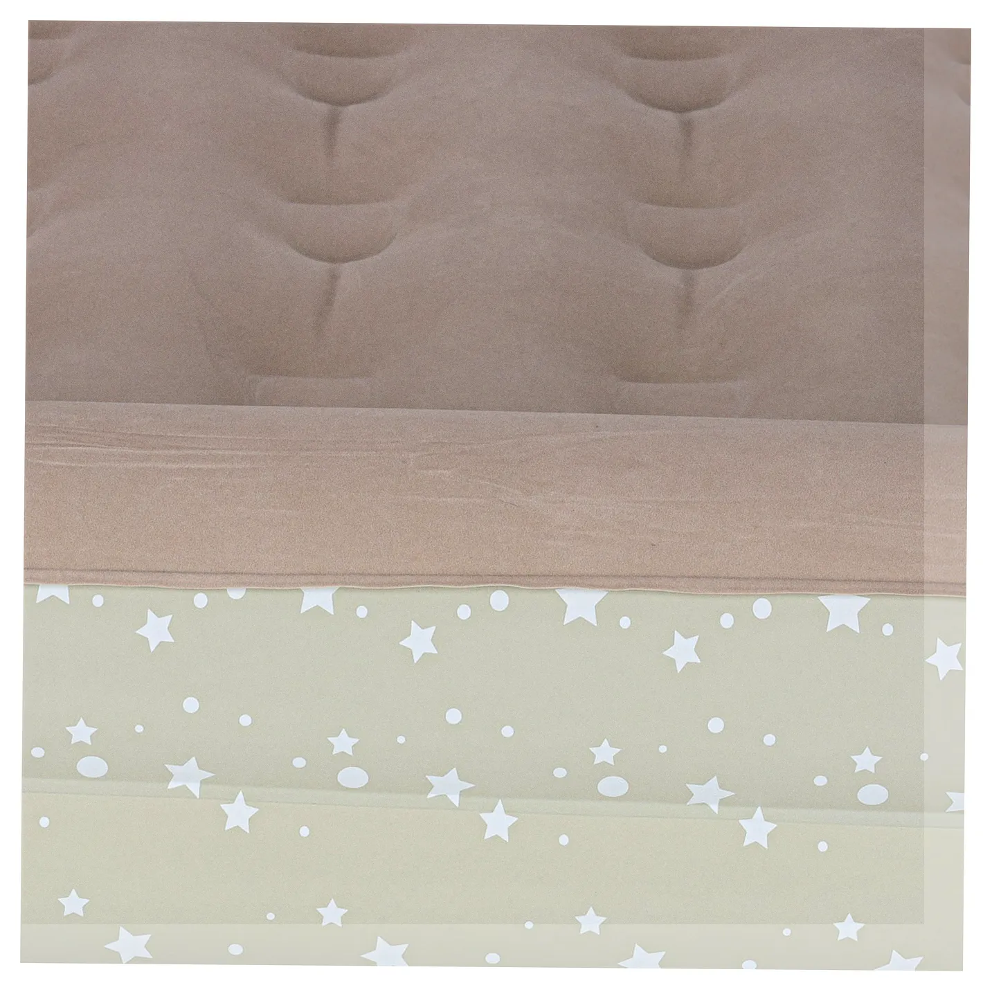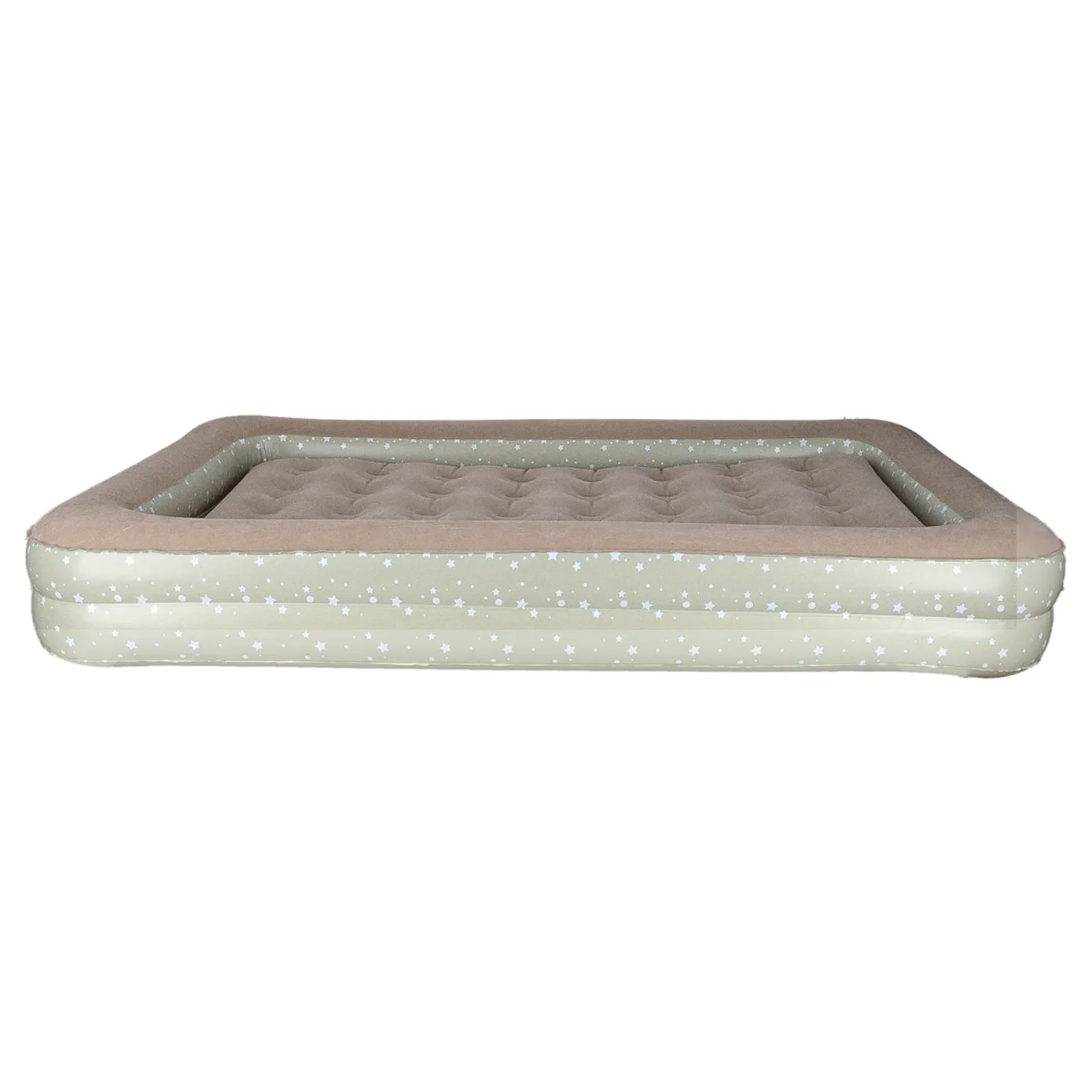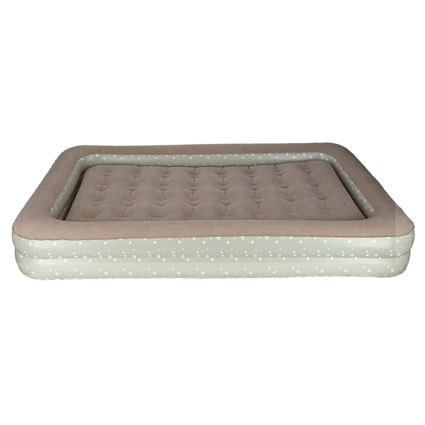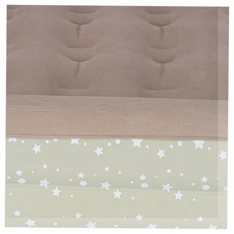 Dwuczęściowe turystyczne łóżko dziecięce w kolorze popielatym do napompowania. Przydatne podczas nocowania poza domem lub na wakacjach. W zestawie ergonomiczna pompka z trzema końcówkami. Wymiary: 140 cm x 90 cm x 20 cm