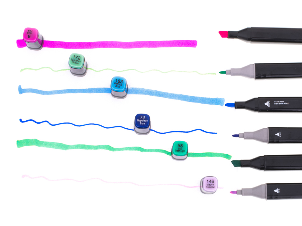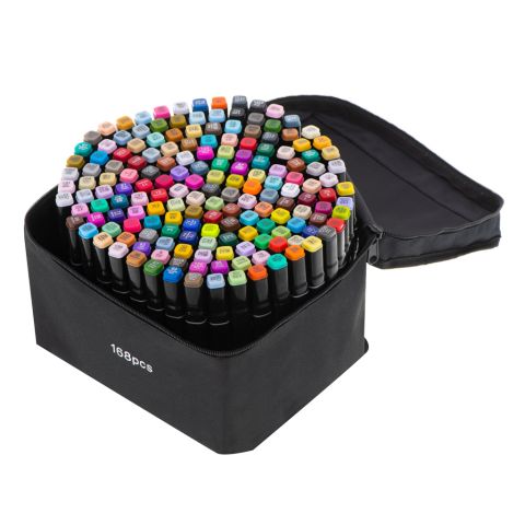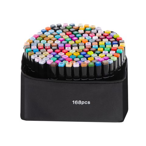 Dwustronne markery alkoholowe we wszystkich kolorach tęczy! Posiadają dwie końcówki – cieńszą i grubszą. Idealny prezent dla dzieci i dorosłych. Zapakowane w estetyczne etui. Ilość markerów: 168szt. Dł. markera: 15cm.