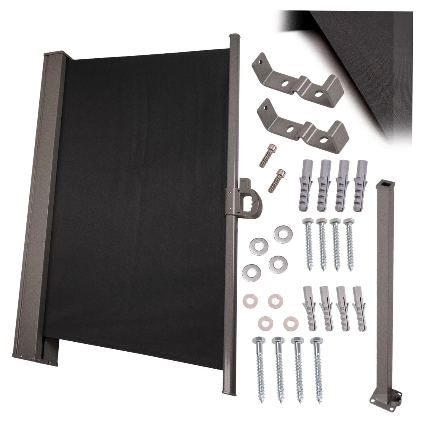 Oferujemy indywidualny wybór rozmiaru i koloru, dzięki czemu markiza boczna idealnie dopasuje się do Twojej aranżacji. Roleta boczna z naszej oferty wyróżnia się szybkim i bezproblemowym montażem. Każdy zestaw zawiera niezbędne akcesoria, w tym solidny słupek do montażu i płytkę mocującą, co zapewnia stabilność i bezpieczeństwo obsługi. Samo mocowanie markizy bocznej jest wyjątkowo proste, nawet dla osób bez doświadczenia.