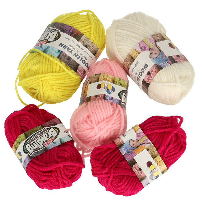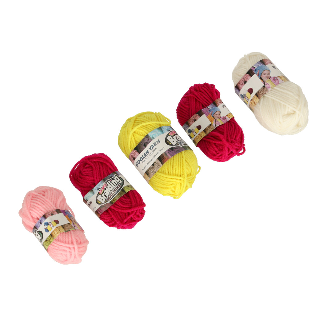 Poza maszyną w zestawie znajdują się również inne niezbędne akcesoria – włóczka w 5 kolorach (niebieski, biały, żółty, jasny różowy i ciemny różowy), szydełko oraz plastikowa igła z dużym oczkiem! Czyli krótko mówiąc – kompletny zestaw do robienia na drutach!
