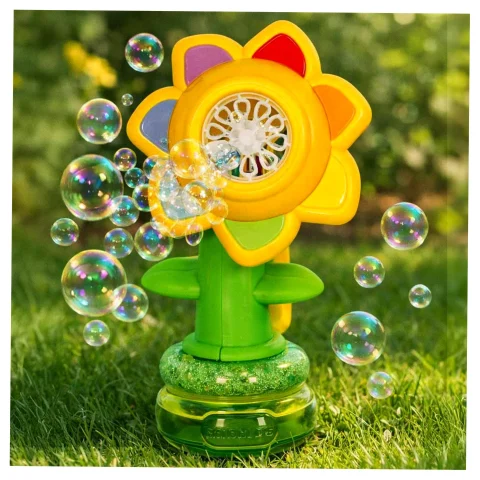 • Magiczny automat do baniek mydlanych w kształcie kwiatka – zachwyca oryginalnym designem. Urocza forma sprawia, że zabawka jest pełna wdzięku i od razu kojarzy się z zabawą, lekkością oraz radością dzieciństwa