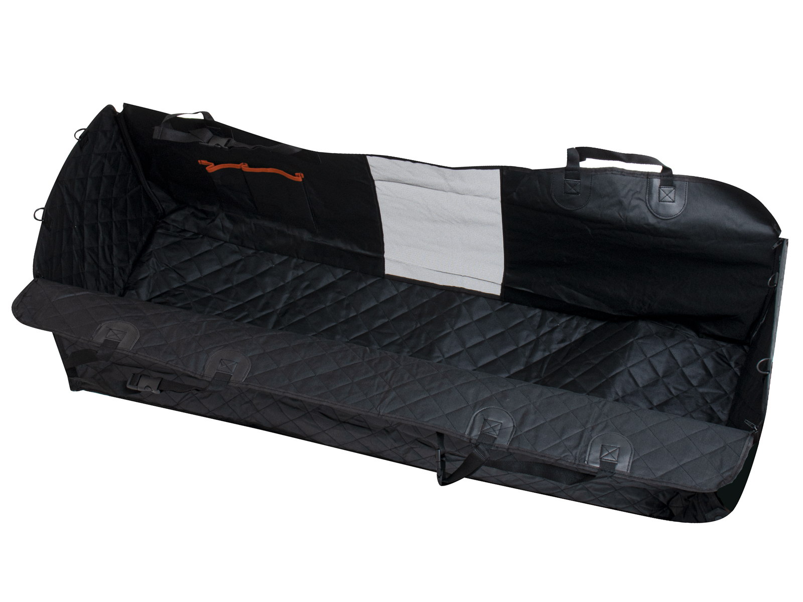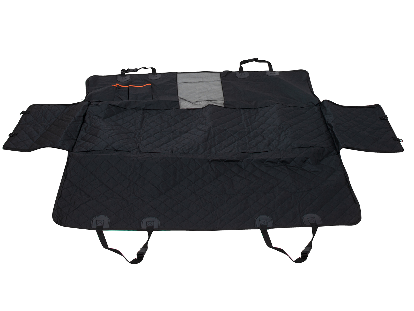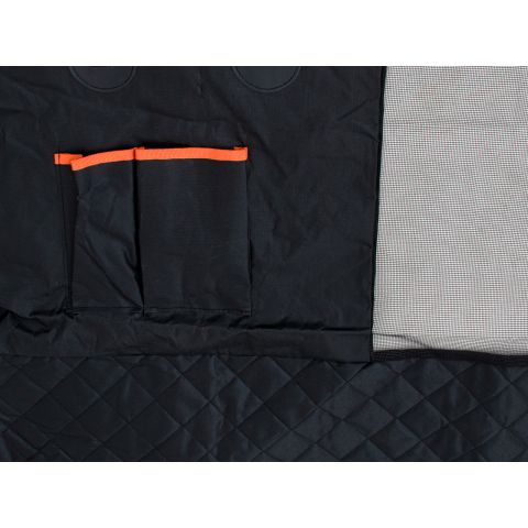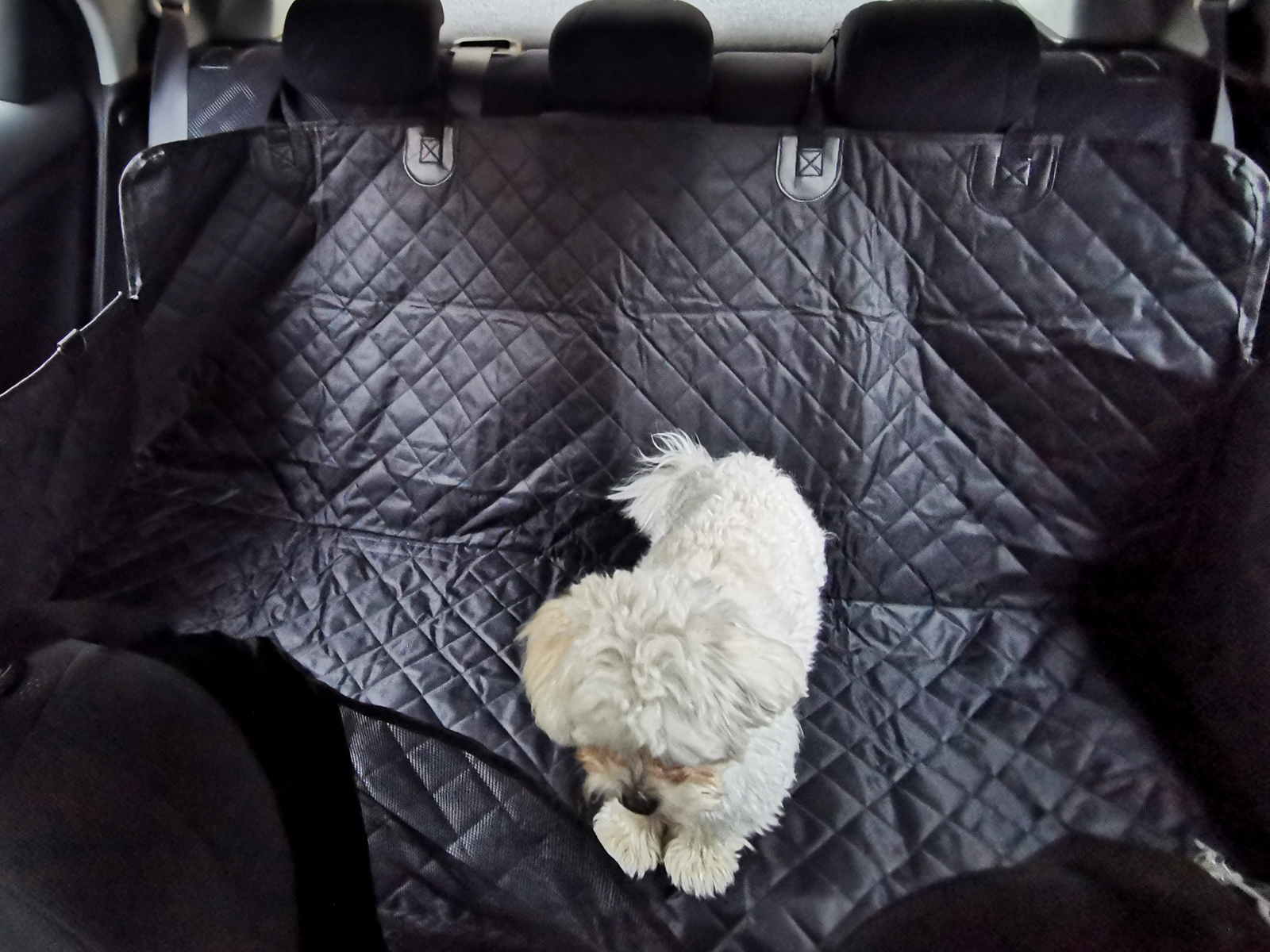 Z przodu maty – pomiędzy przednimi siedzeniami zamontowano siatkę, dzięki czemu zwierzak może widzieć swojego właściciela i patrzeć na drogę, ale nie ma możliwości przejść na przednie siedzenia.
