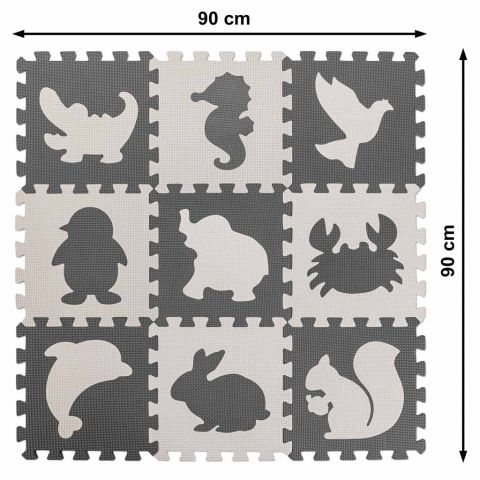 MATA EDUKACYJNA PIANKOWA PUZZLE ZWIERZĄTKA SZARA 85 X 85 CM 9 ELEMENTÓW