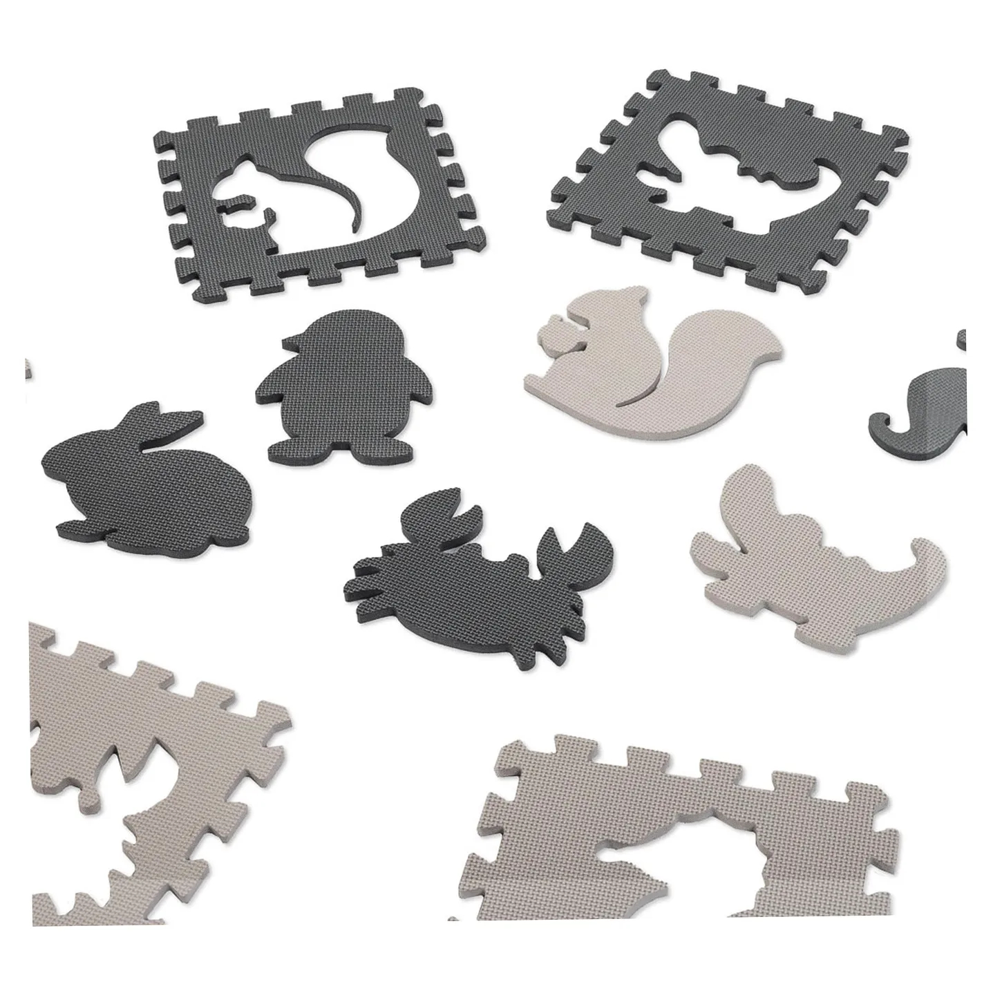 MATA EDUKACYJNA PIANKOWA PUZZLE ZWIERZĄTKA SZARA 85 X 85 CM 9 ELEMENTÓW