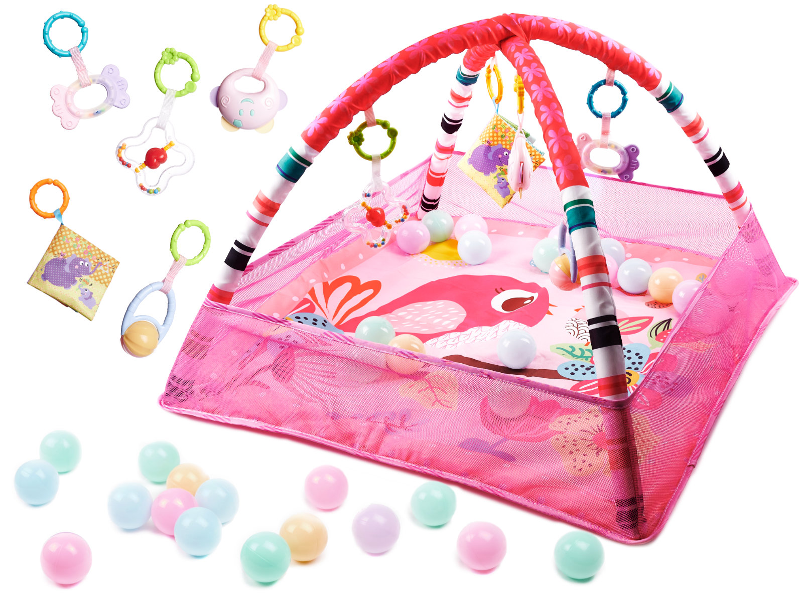 Mata Edukacyjna z pałąkami Basen z piłeczkami różowa