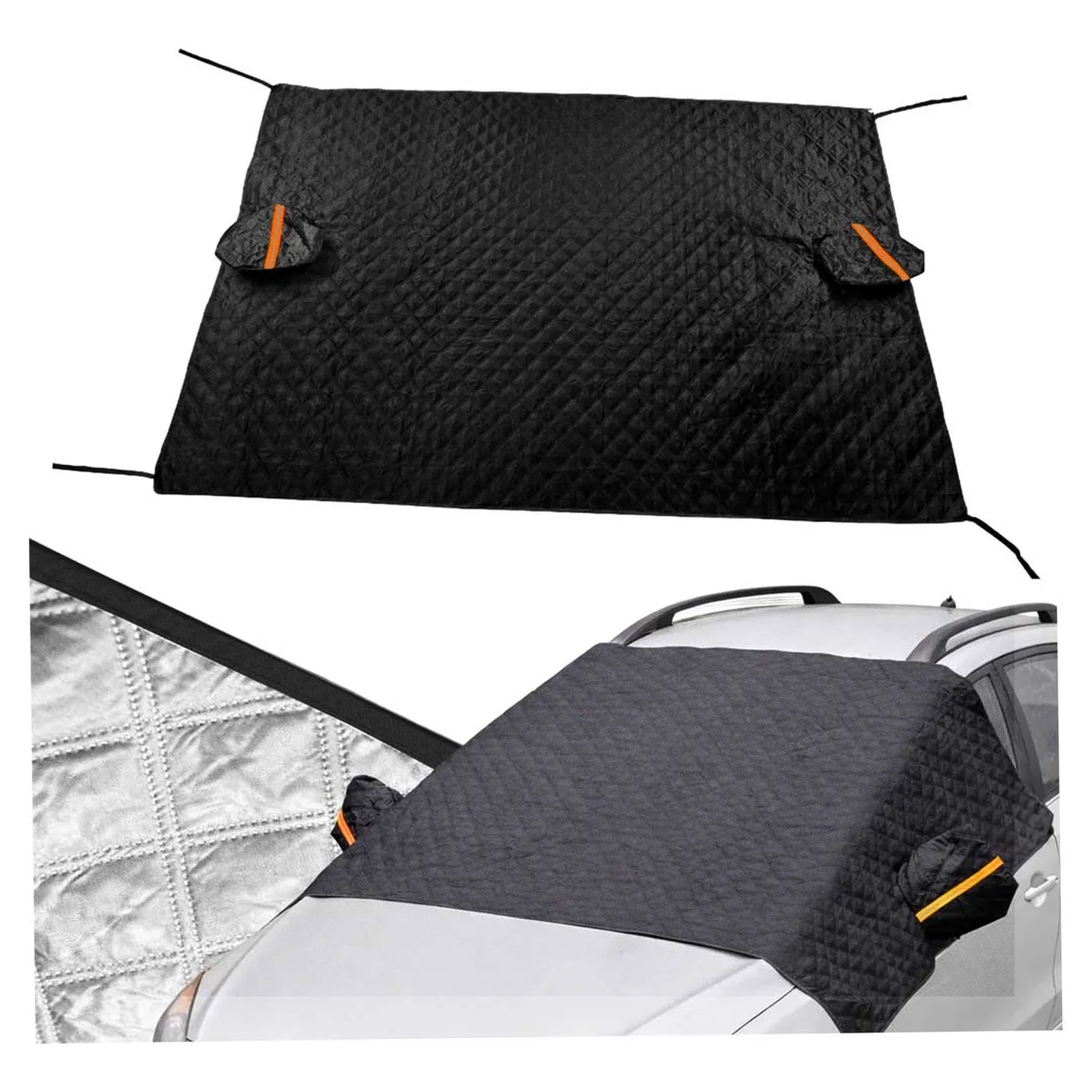Osłona została wyposażona w elementy mocujące na lusterka, które zapewniają stabilność nawet przy silnym wietrze, jednocześnie zabezpieczając lusterka. Dodatkowe zaczepy mocowane do felg utrzymują matę na miejscu.