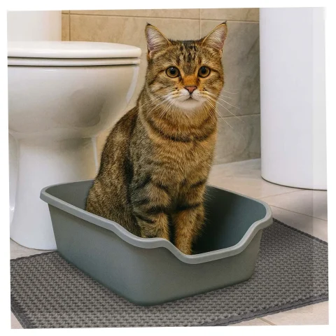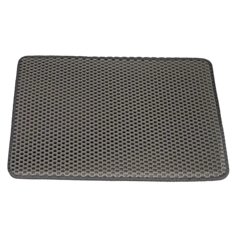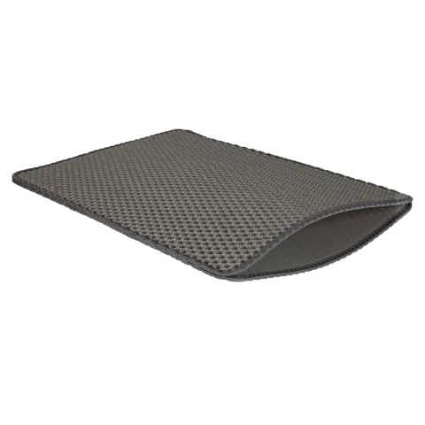 Wodoodporna, dwuwarstwowa mata pod kocią kuwetę – koniec z rozsypanym żwirkiem po całym domie. Dwuwarstwowa konstrukcja maty będzie łapać resztki żwirku z kocich łapak i zapobiegać jego dalszemu roznoszeniu się. Tworzywo: materiał EVA. Wym.: 60x40x1 cm.