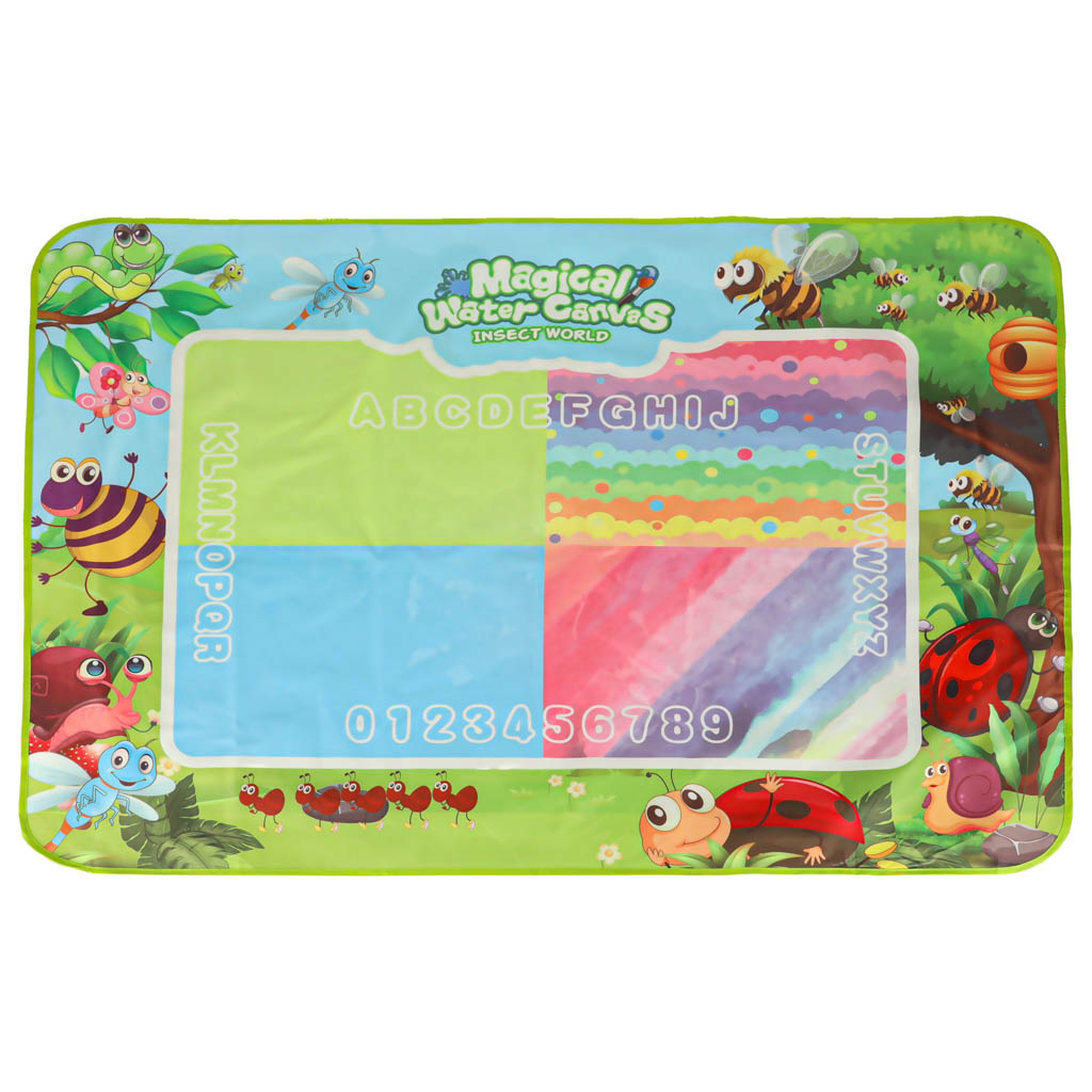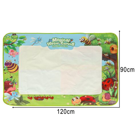 Duża mata wodna do malowania dla dzieci 120×90 cm z motywem łąki. Edukacyjna zabawa bez bałaganu – wystarczy woda i dołączone pisaki wodne, by tworzyć kolorowe rysunki. Szybkoschnąca, wielokrotnego użytku, idealna dla dzieci 3+