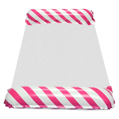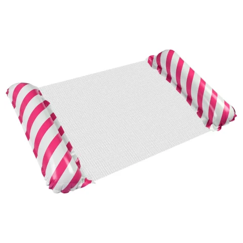 Pływający materac w biało-różowe pasy sprawdzi się znakomicie podczas urlopu nad morzem czy na basenie. Jego ciekawy design zachwyci małych i dużych – wyraziste dwukolorowe paski idealnie wpisują się w wakacyjne trendy. Lekka siateczkowa podstawa oraz dmuchane oparcia pozwalają na spokojne dryfowanie nad wodą w pozycji siedzącej lub leżącej. Profilowany kształt dmuchanego materaca stanowi stabilne podparcie ciała, co przedkłada się na jego wielofunkcyjność. Dzięki temu nadaje się zarówno do niezobowiązującego relaksu, jak i przydaje się podczas nauki pływania.