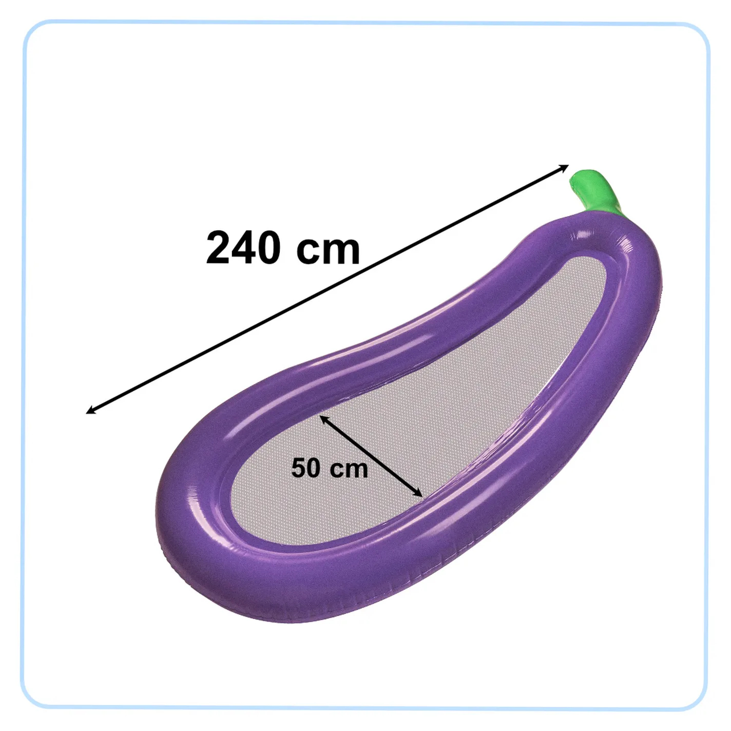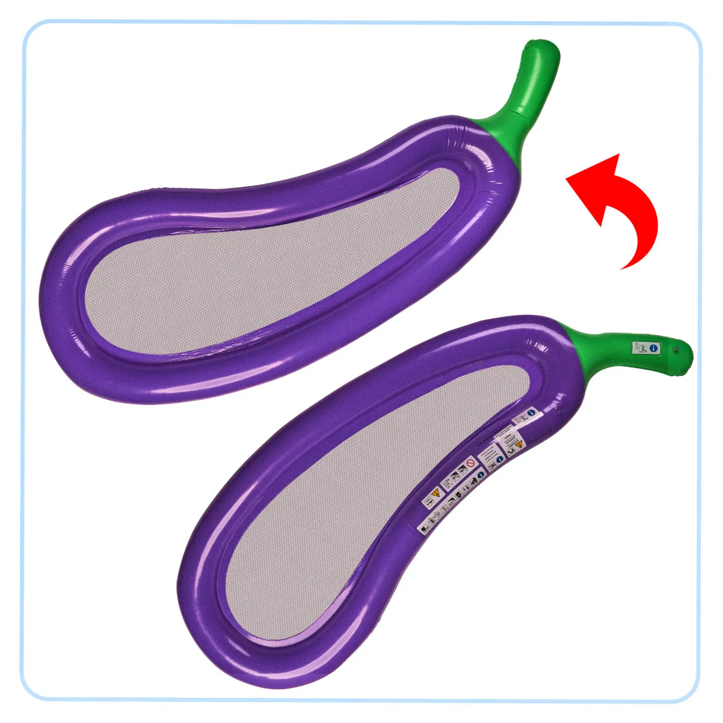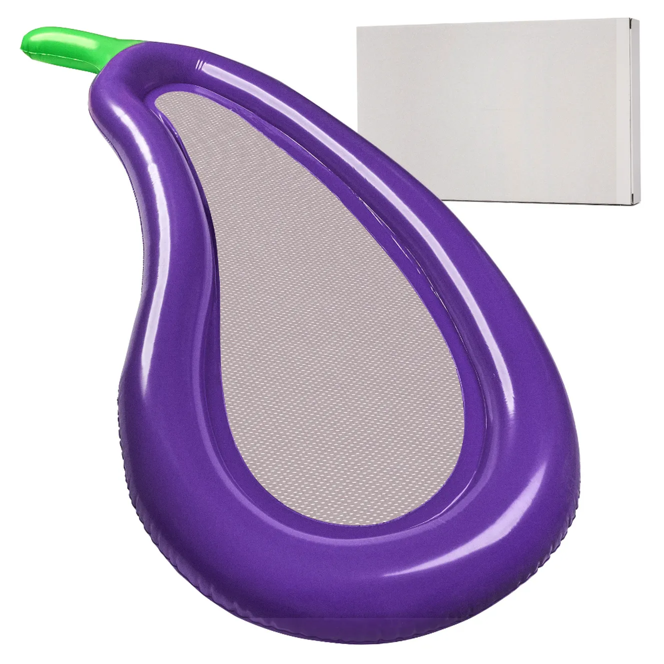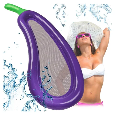 Dmuchany materac w kształcie bakłażanu dostarczy wrażeń znacznie bardziej ekscytujących niż konsumpcja niejednego grillowanego bakłażana. Na tę nietypową wersję owocu składa się pompowany obrys fioletowego bakłażana z zielonym ogonkiem.